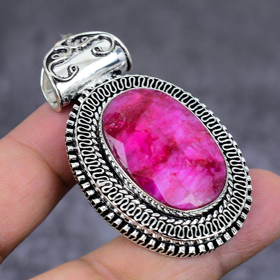 Рубин(Смоделированный) Ювелирный кулон из стерлингового серебра 925 пробы с драгоценным камнем 2,17 дюйма