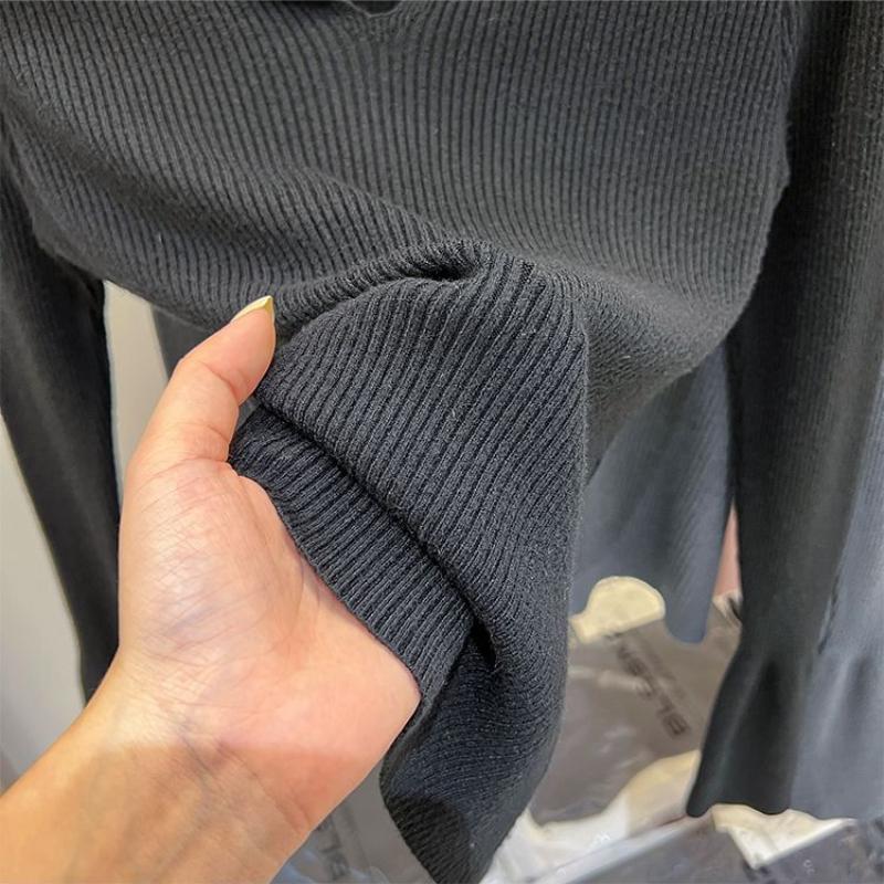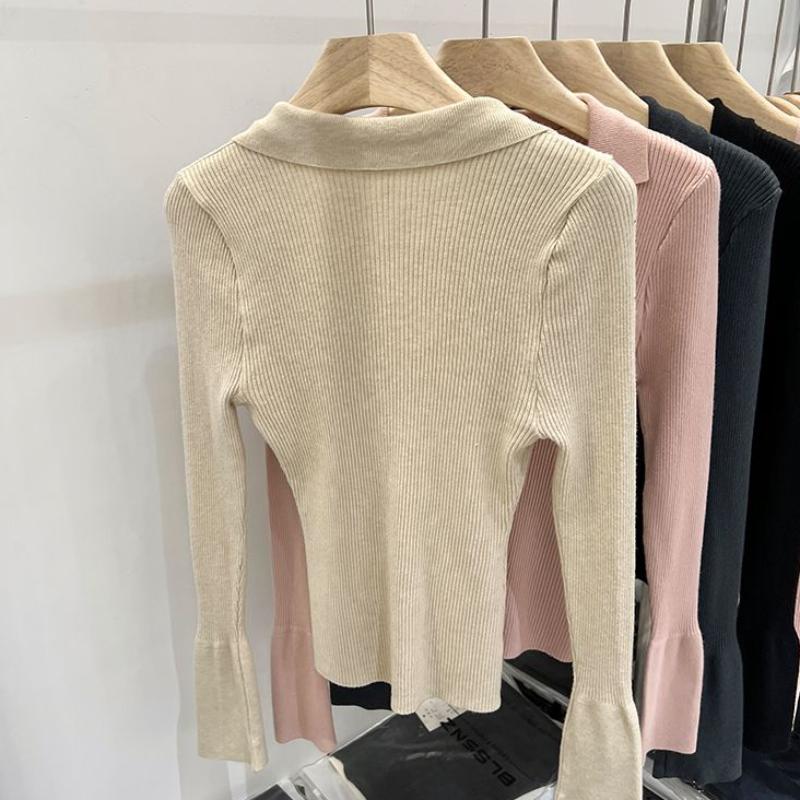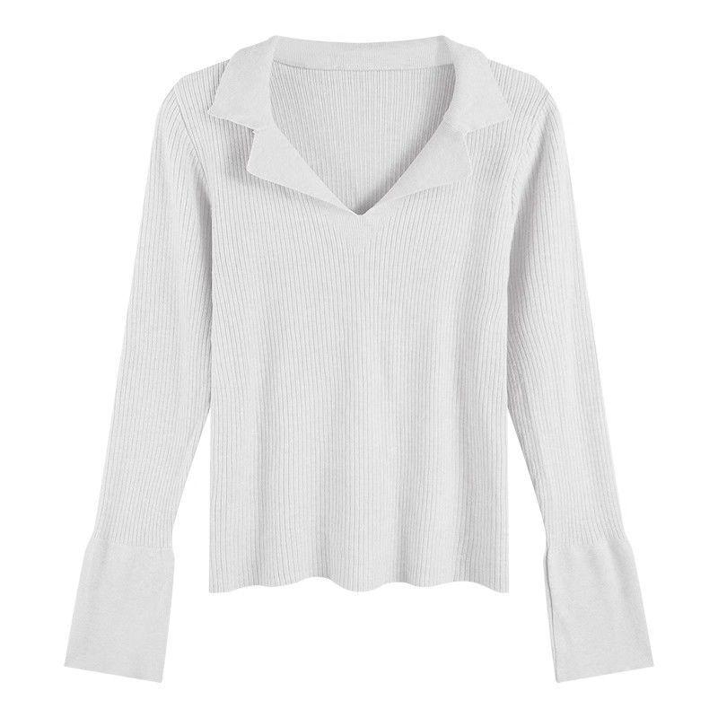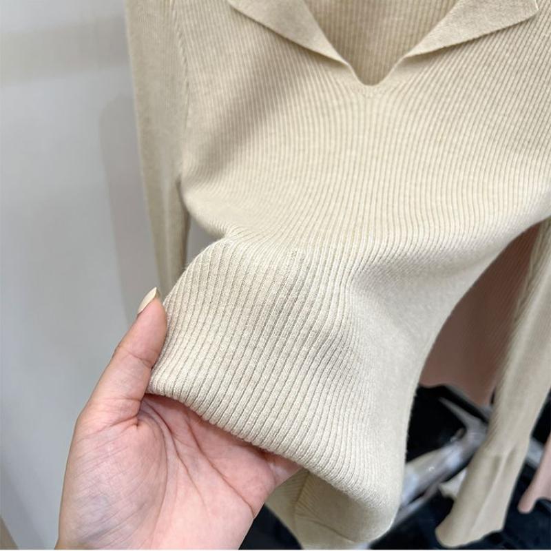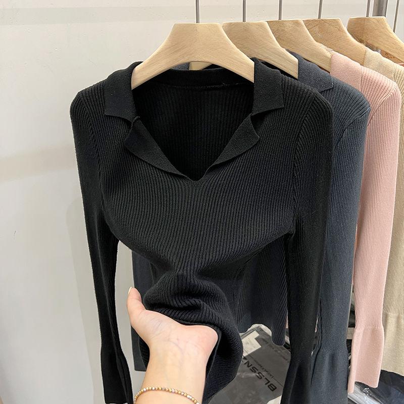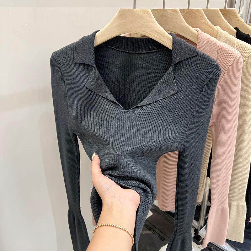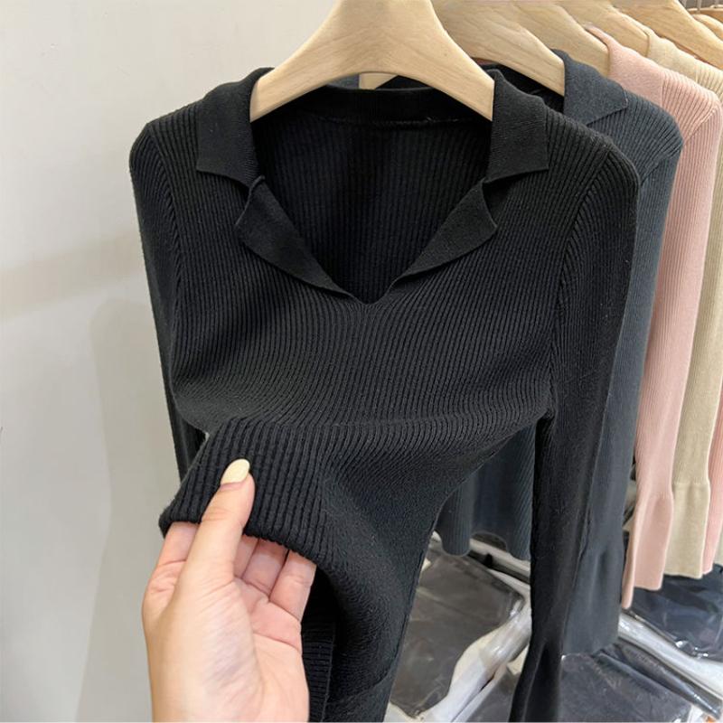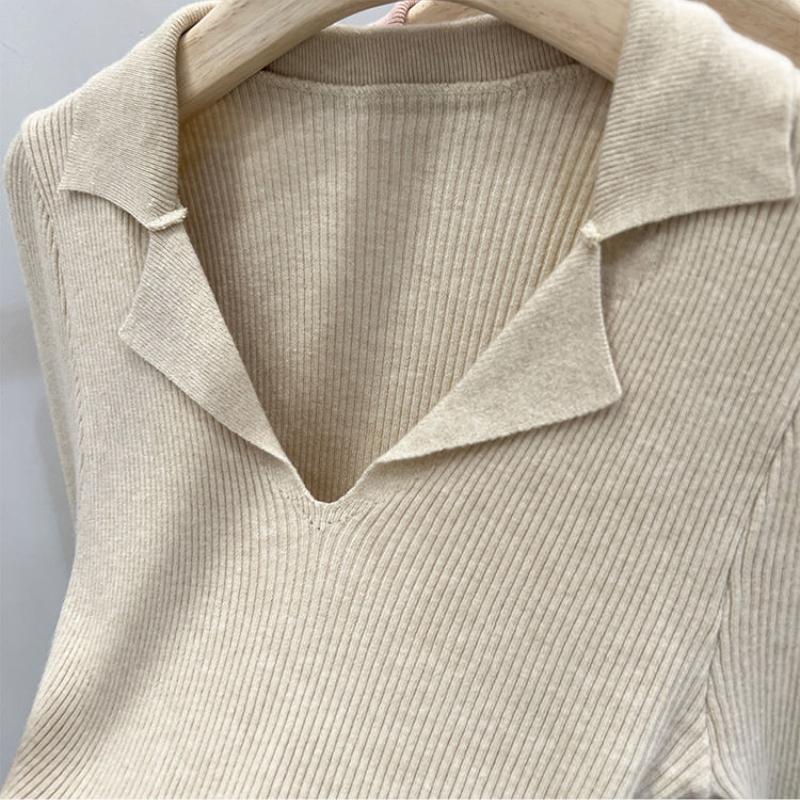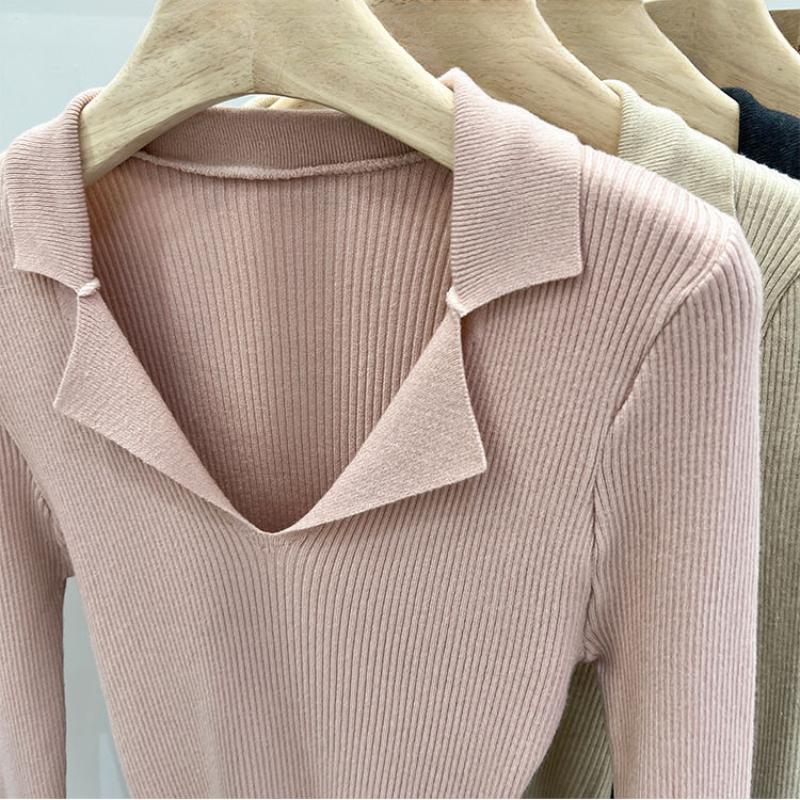 Французский элегантный трикотажный топ с V-образным вырезом, женские осенние тонкие стильные уникальные шикарные однотонные пуловеры, модные дизайнерские базовые повседневные рубашки поло, зима