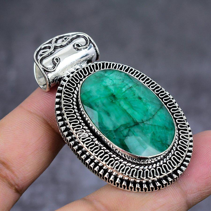 Подвеска из натурального изумруда из стерлингового серебра 925 пробы 2,17 дюйма B2q91