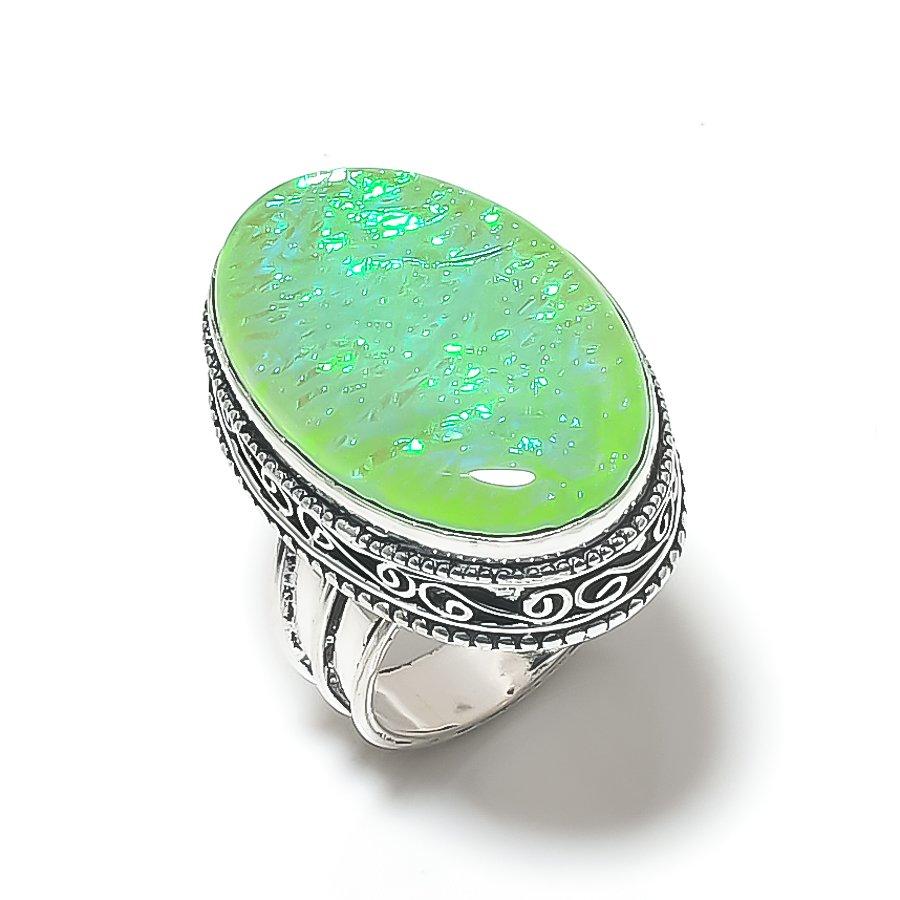 Кольцо из натурального зеленого триплетного опала, драгоценный камень, стерлинговое серебро 925 пробы, размер 9 s4P91