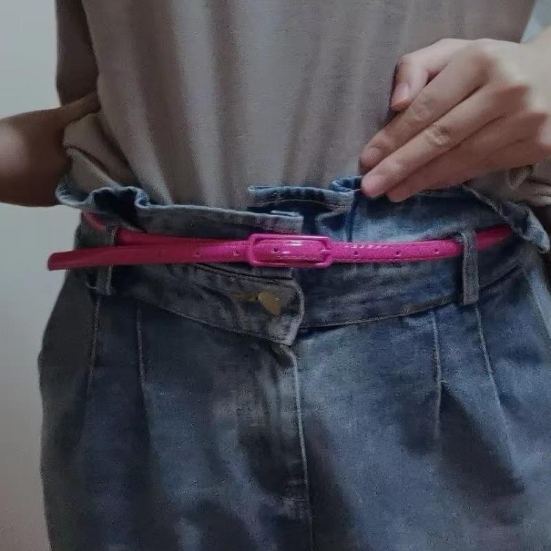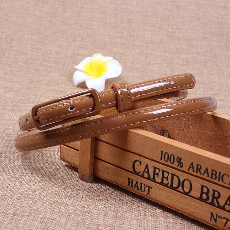 Женщины Девушка Мода Карамельный Цвет Пряжка Тонкий Тонкий Тощий Кожаный Поясной Ремень Пояс