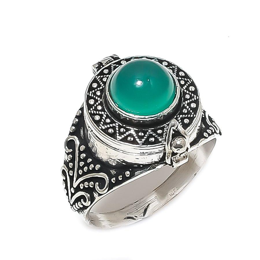 Кольцо из стерлингового серебра 925 пробы с натуральным зеленым ониксом, размер 14, A9h72