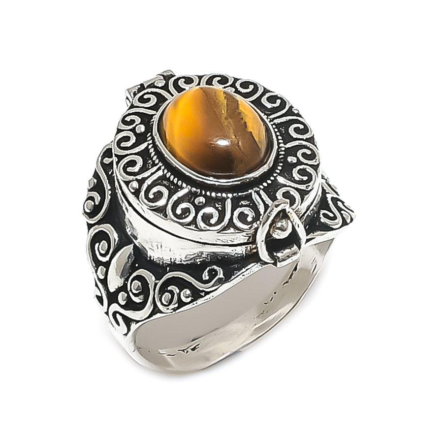 Кольцо из серебра 925 пробы с натуральным тигровым глазом, размер 9,5 o4S05
