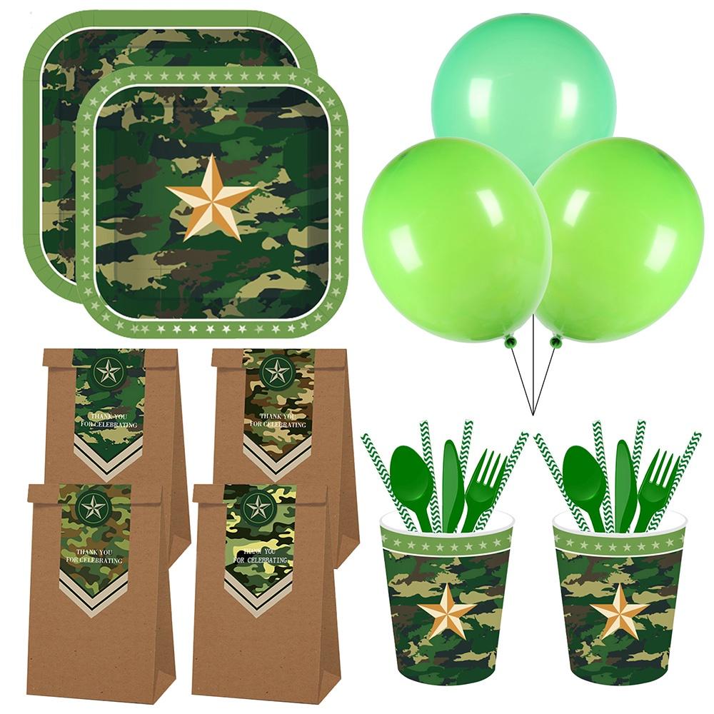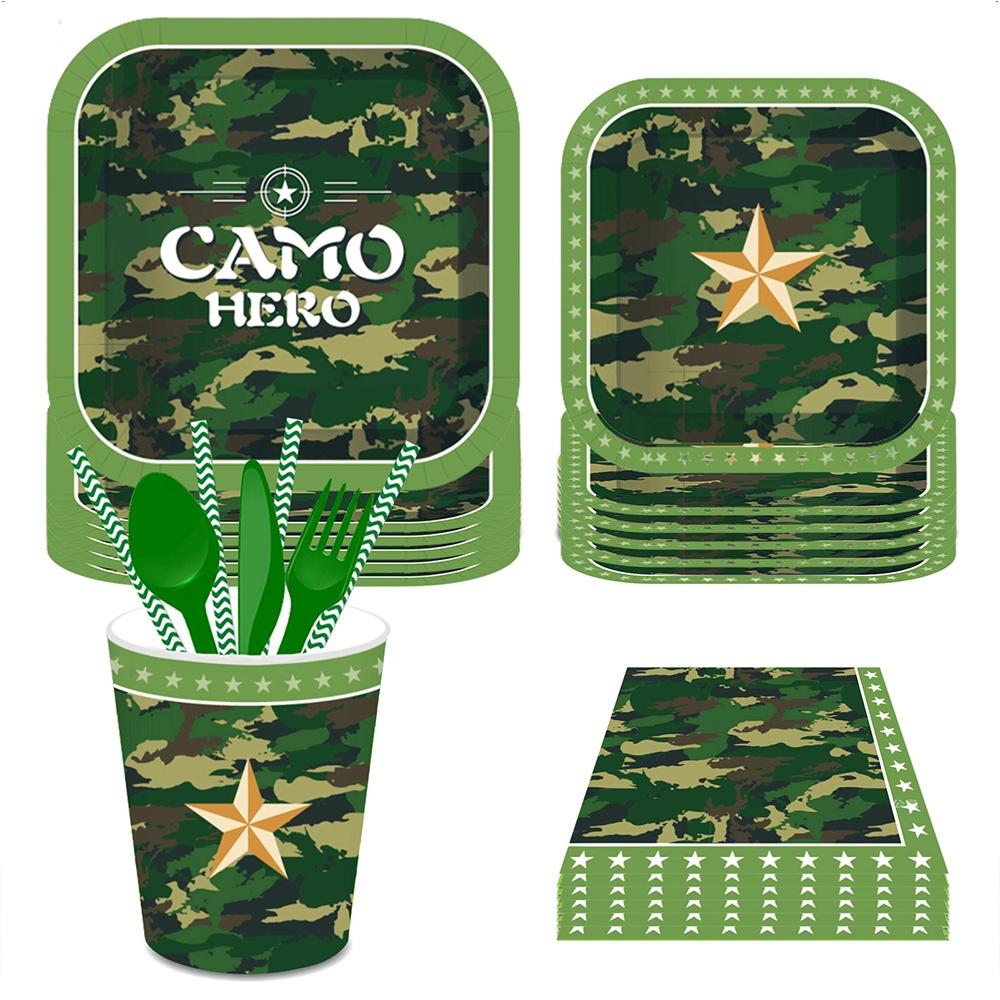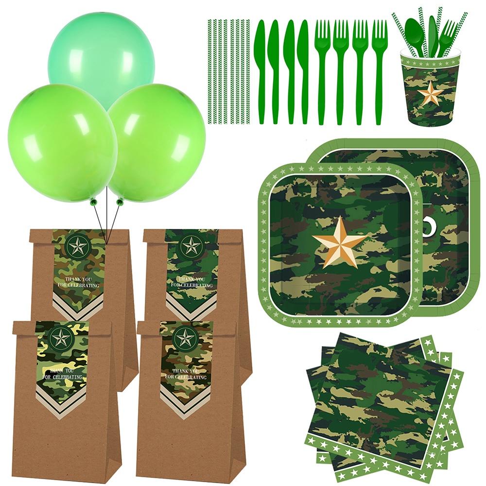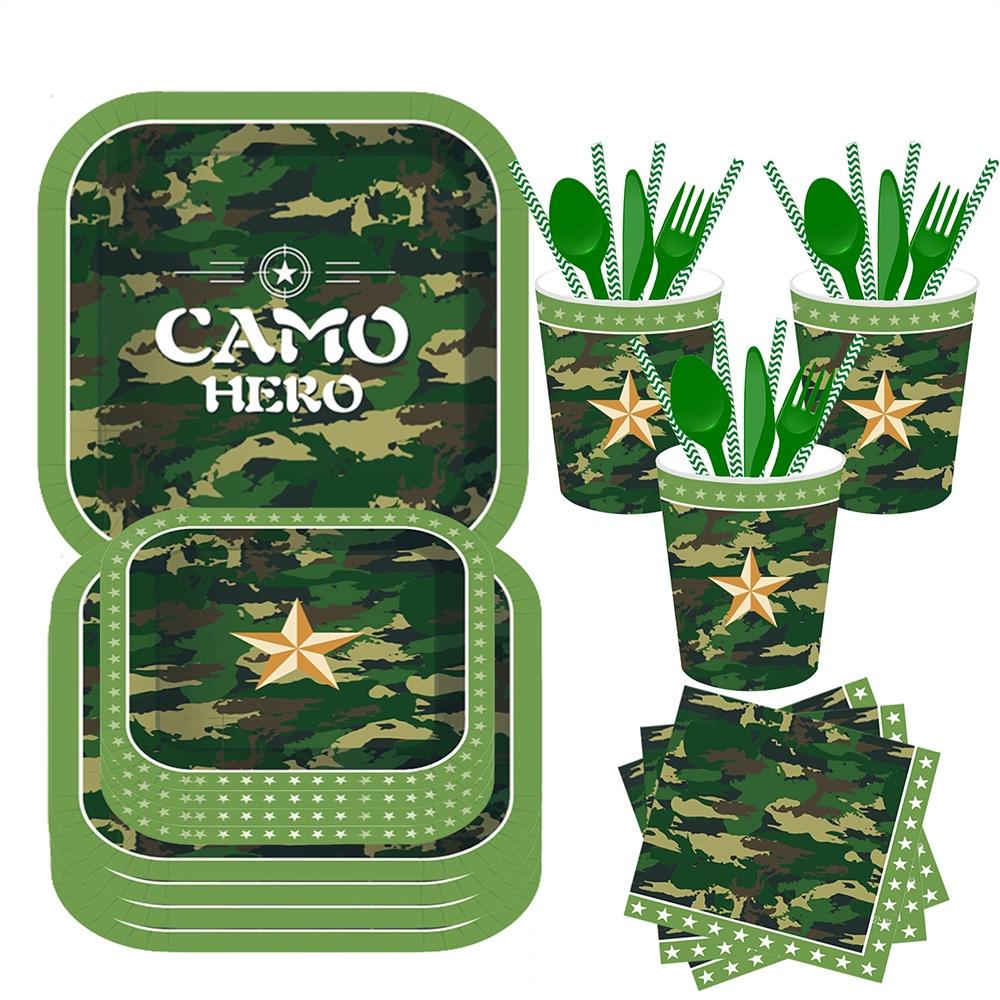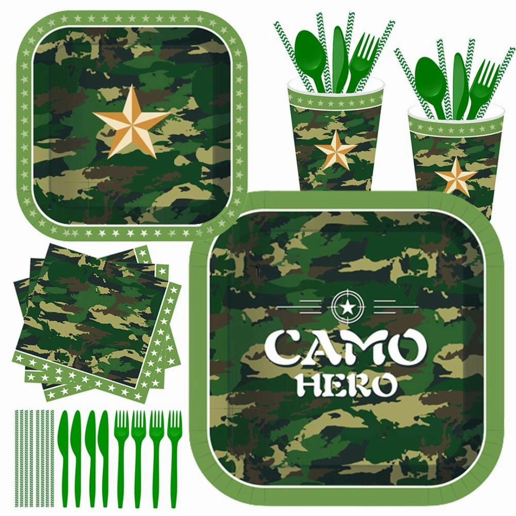 Набор столовых приборов в стиле милитари, одноразовый поднос для бумаги, нож, вилка, ложка, соломинка, принадлежности для вечеринки в стиле камуфляж на день рождения