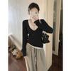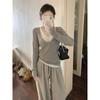 DAFIFY Женская мода повседневная осень-зима однотонный принт длинный рукав V-образный вырез свитера