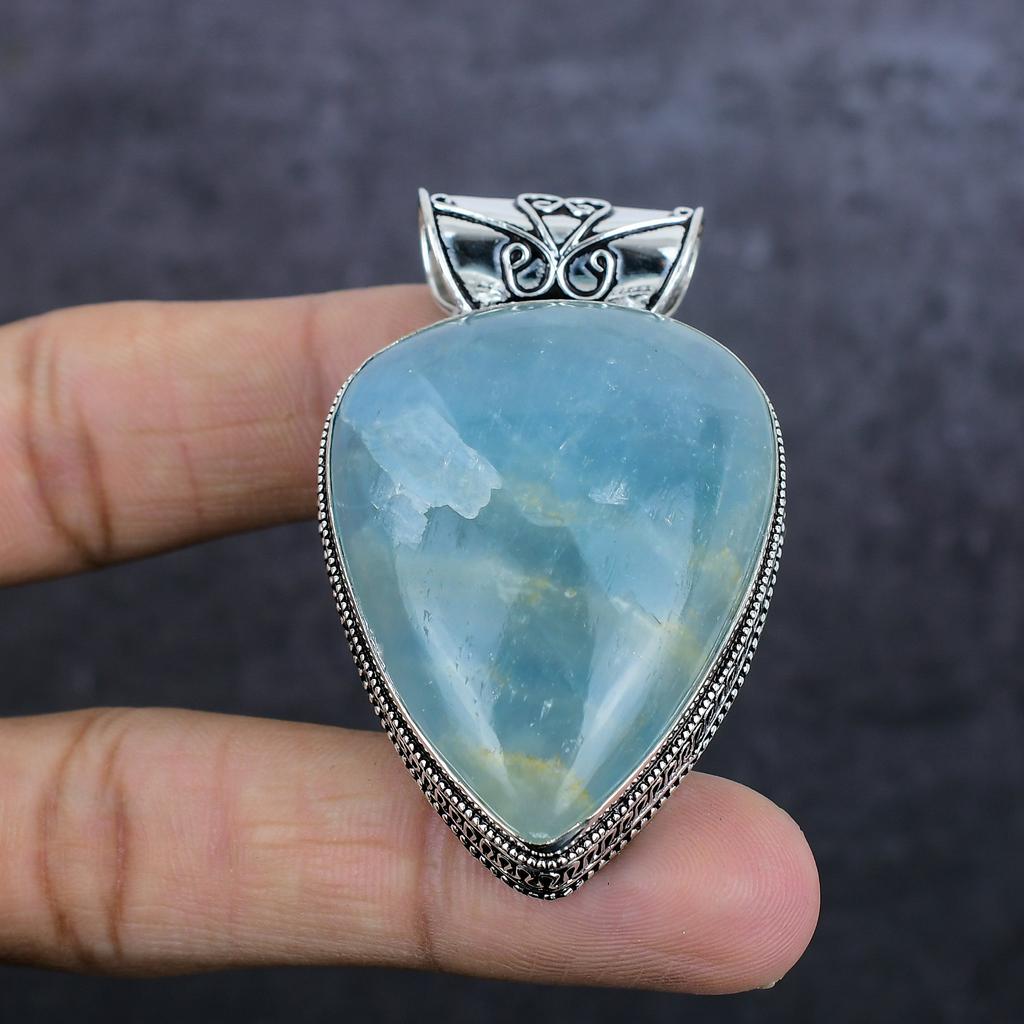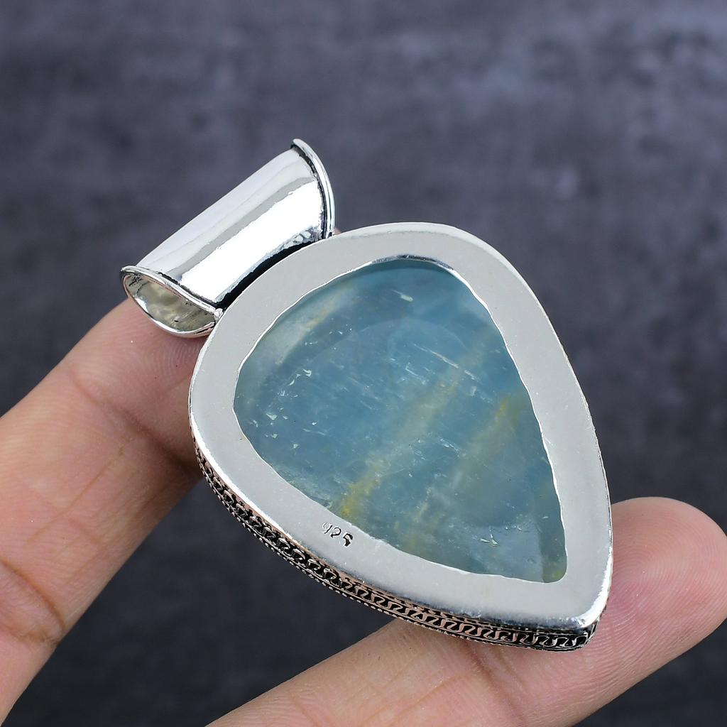 Подвеска из стерлингового серебра 925 пробы с натуральным аквамарином 2,40 дюйма