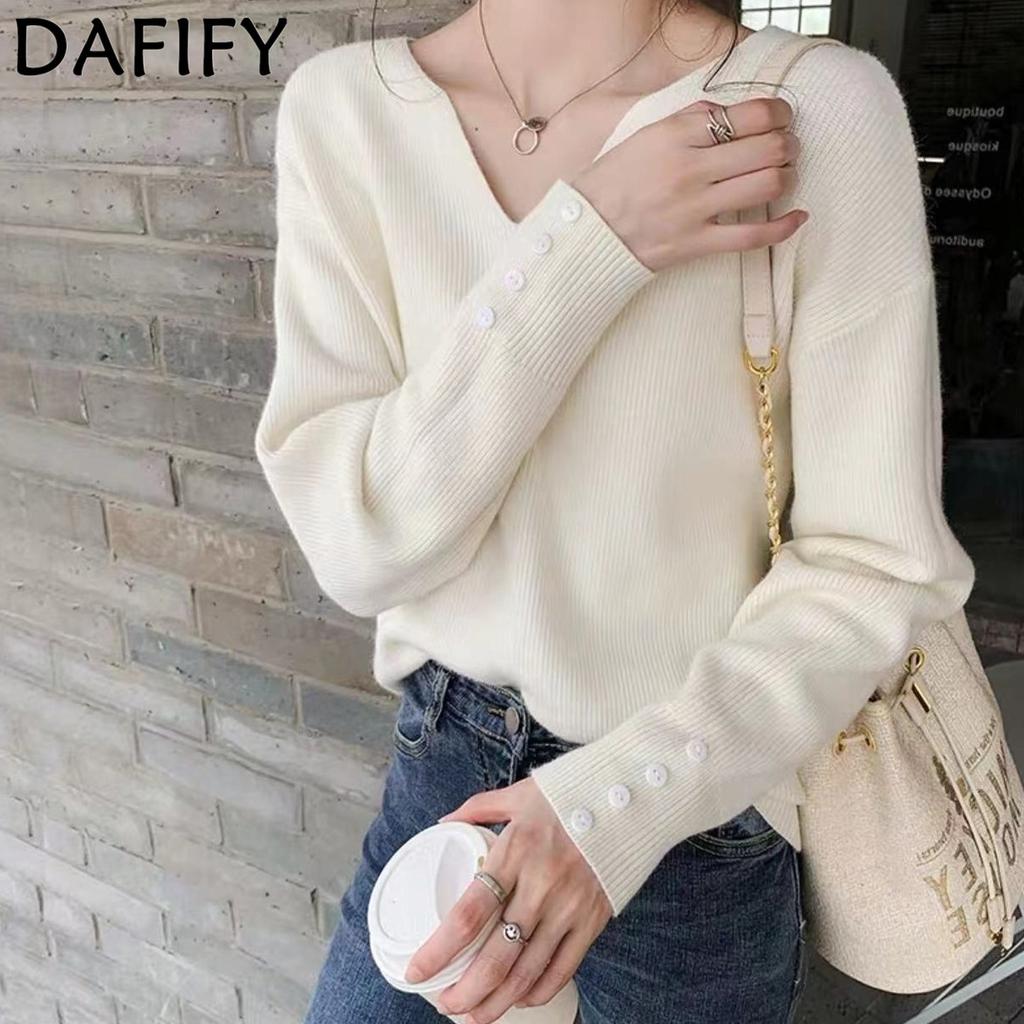 DAFIFY Женская мода повседневная осень-зима однотонный принт длинный рукав V-образный вырез свитера
