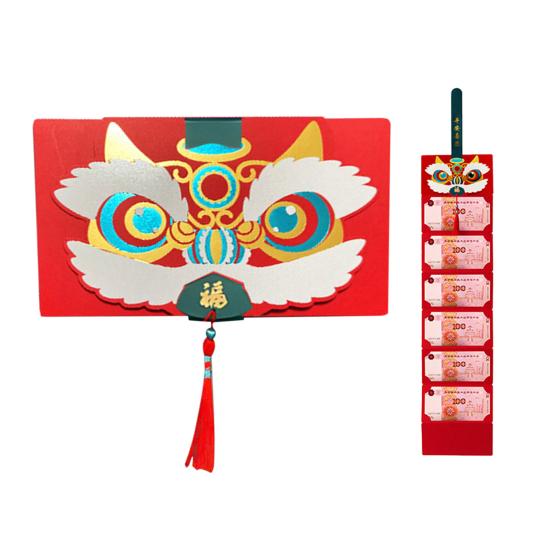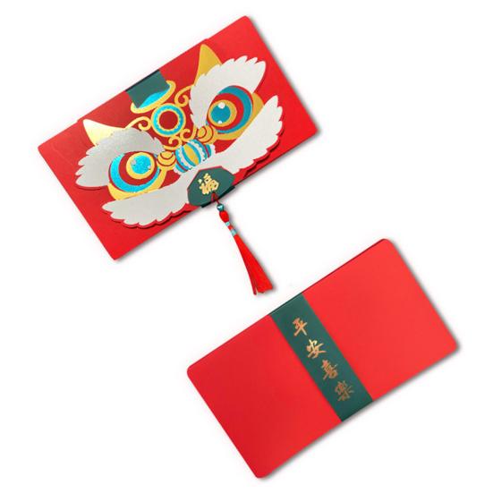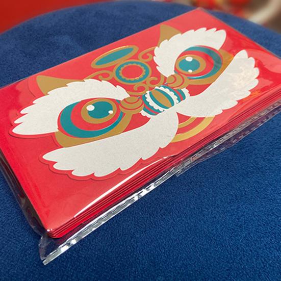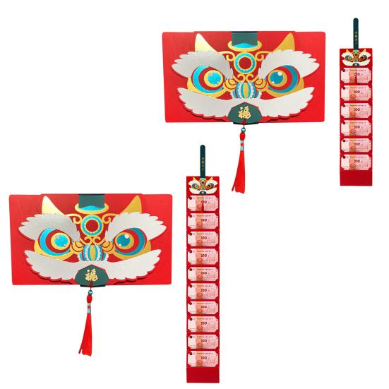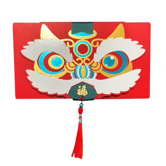 Этот складной красный конверт имеет ярко-красный цвет и мультяшную тему танца льва, которая идеально подходит для новогодних и весенних праздников.