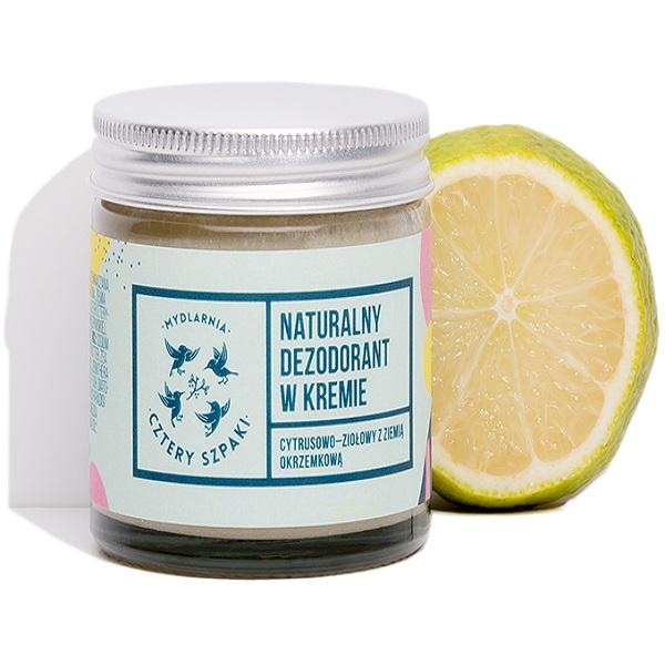 Натуральный дезодорант в форме крема благодаря своей уникальной формуле сочетает в себе свежие цитрусовые ноты с травяными акцентами, обеспечивая эффективную защиту от неприятных запахов в течение дня.. Продукт содержит тщательно отобранные ингредиенты, которые заботятся о коже, обеспечивая ее комфорт и свежесть.. Формула дезодоранта эффективно нейтрализует неприятные запахи, обеспечивая ощущение свежести на долгое время.. Натуральные ингредиенты помогают регулировать чрезмерное потоотделение, не блокируя естественные процессы выведения.. Кремовая консистенция дезодоранта увлажняет и питает кожу, предотвращая раздражение и сухость.
