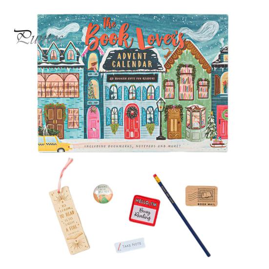 Литературные изыски раскрыты: Погрузитесь в мир литературных сюрпризов с пронумерованными карманами, наполненными подарками, достойными книжных червей, от магнитных закладок до очаровательных наклеек и многого другого.