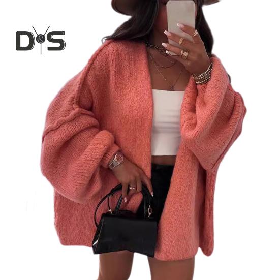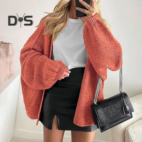 Женский кардиган, свитер-фонарик с длинным рукавом, однотонный, свободный вязаный кардиган с открытым передом, легкий свитер, верхняя одежда