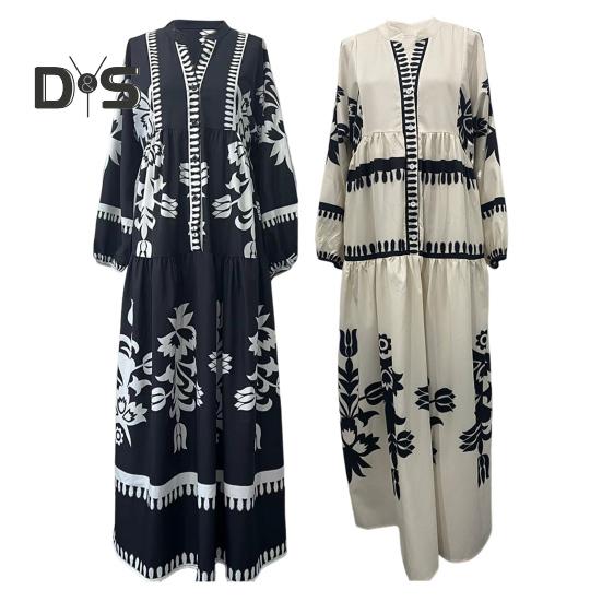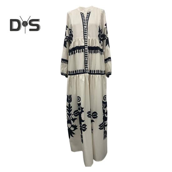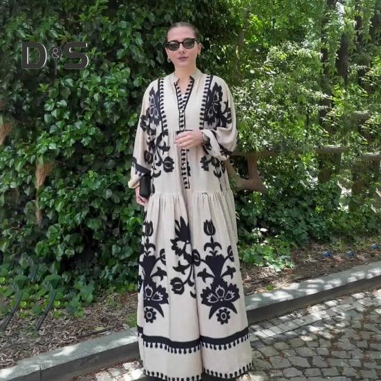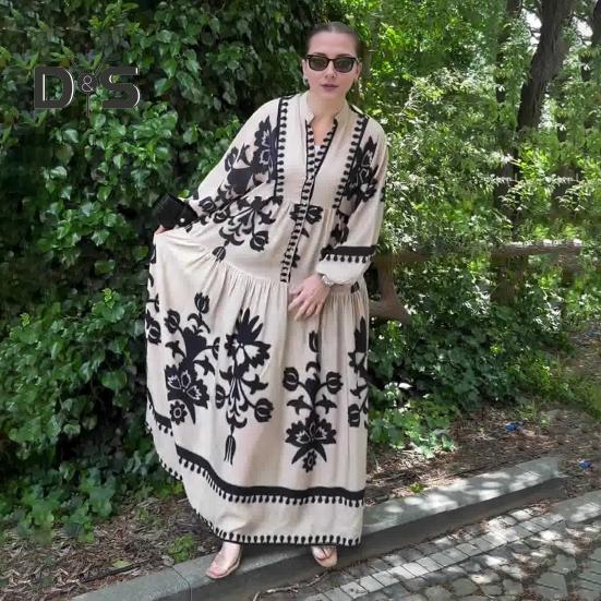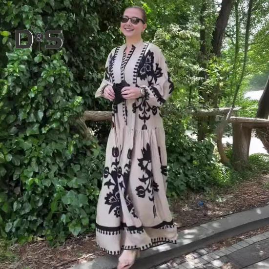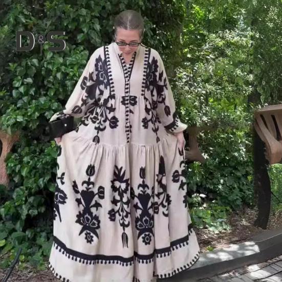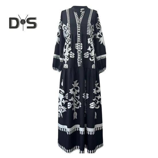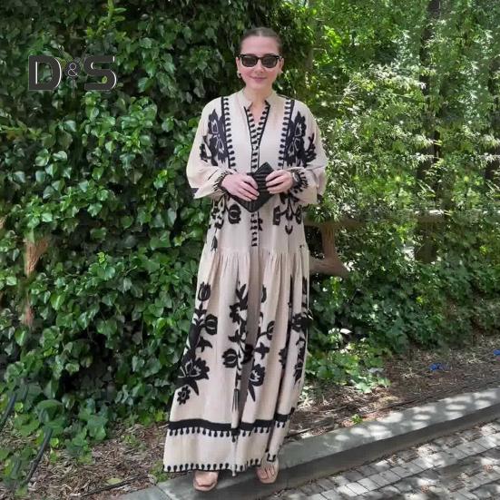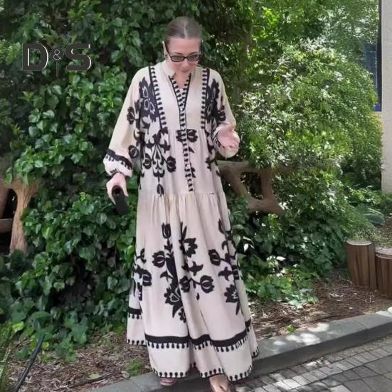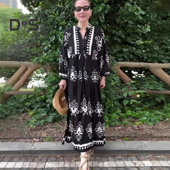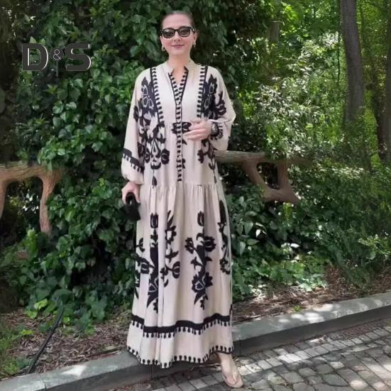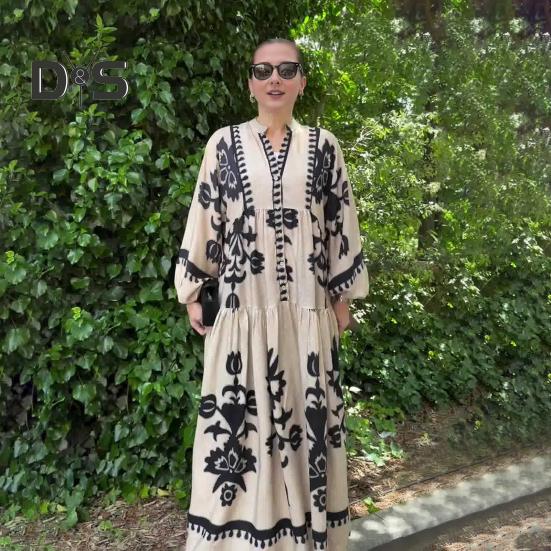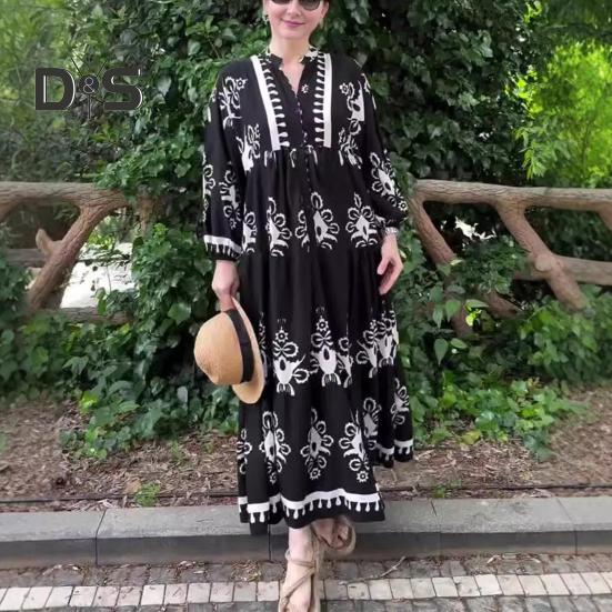 Это повседневное и свободное платье длиной до щиколотки воплощает непринужденный ретро-стиль и идеально подходит для повседневной носки благодаря своему модному и универсальному дизайну.. Платье изготовлено из полиэстера, обеспечивает комфорт и легкость, гарантируя вам комфорт в течение всего дня.. Простой, но элегантный принт добавит изысканности вашему образу..
