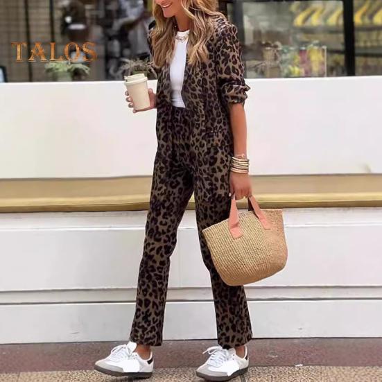 Стильный леопардовый принт: Украсьте свой гардероб этим шикарным женским костюмом с модным леопардовым принтом.. Выделитесь стильно во время ежедневных поездок на работу или повседневных прогулок с этим модным комплектом из двух предметов.