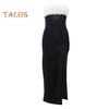 Женское вечернее платье с открытыми плечами, без рукавов, без спинки, без воротника, бандо, пушистый искусственный мех, декор, разрез сбоку, коктейльное вечернее платье-макси, выпускной, топ-платье