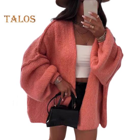 Стильный дизайн: Этот объемный кардиган с длинными рукавами, отличающийся свободными силуэтами, топами с открытыми плечами, рукавами-фонариками и простыми однотонными цветами, легко добавит модный штрих в ваш гардероб.