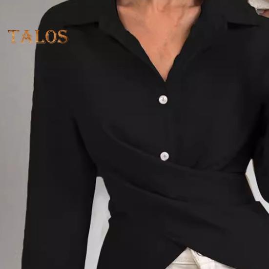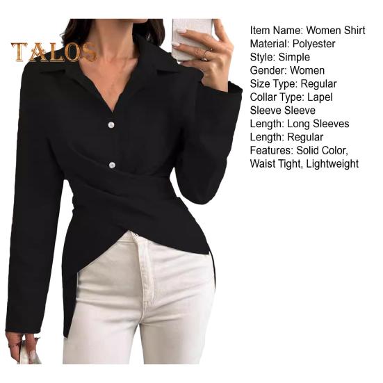 Дополните свой гардероб нашей женской рубашкой из высококачественного полиэстера, которая отличается легкостью и воздухопроницаемостью.. Эта универсальная модель отличается однотонными цветами, лацканами, однобортными пуговицами и длинными рукавами, что придает ей модный вид..