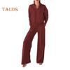 Подчеркните свой стиль с помощью этого женского костюма с индивидуальным дизайном V-образного выреза и модными широкими брюками.. Этот простой однотонный костюм-двойка идеально подойдет для демонстрации вашего очарования. Он универсален для повседневной носки и подходит для людей разного типа фигуры и возраста.. Изготовленный из дышащей полиэфирной ткани, этот костюм обеспечит комфорт весной, осенью и зимой..