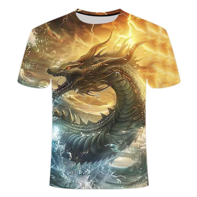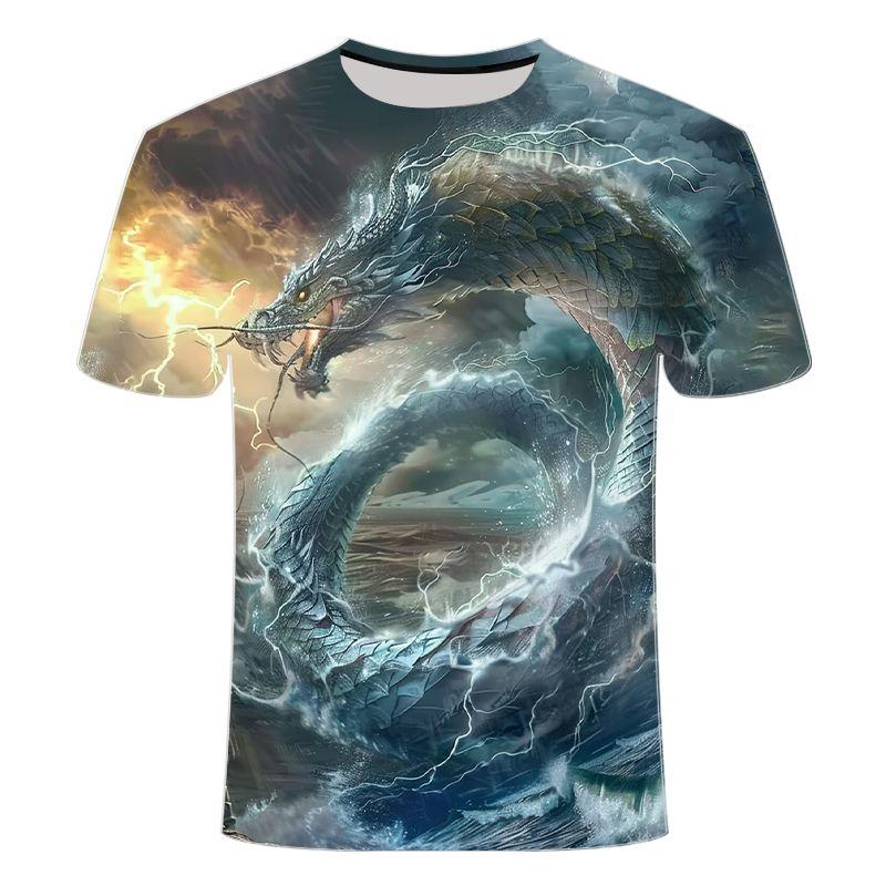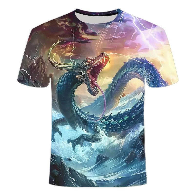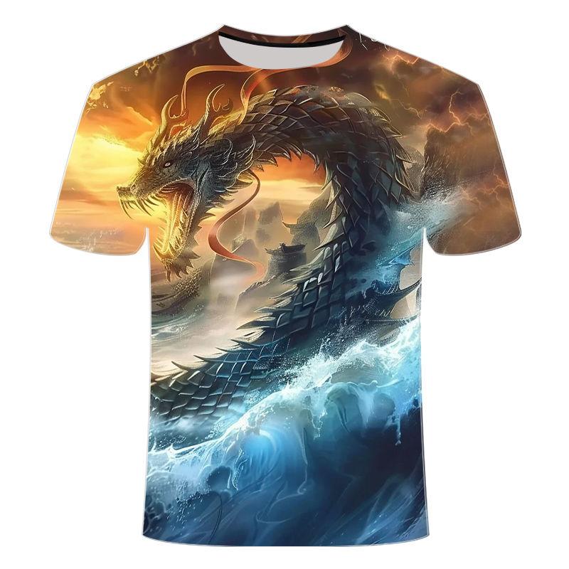 Лето 2024 года, новые 3D-печатные футболки с коротким рукавом, персонализированные и взрывные, серия Mighty Dragon Birth для мужчин и женщин