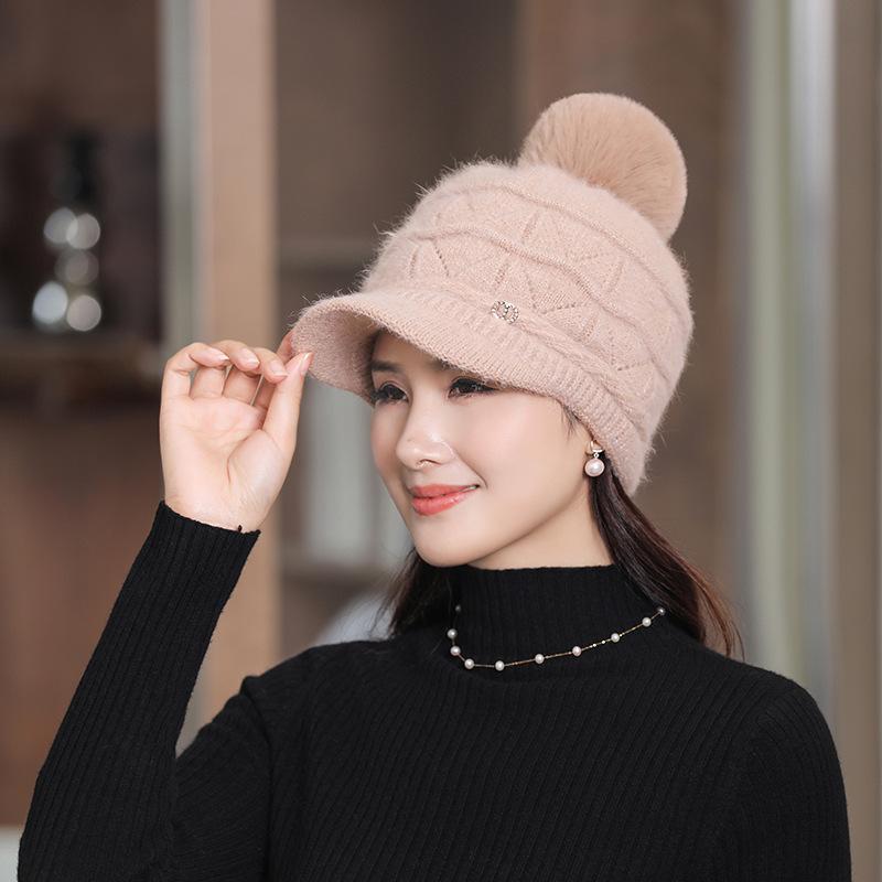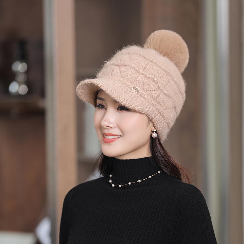 Осенне-зимняя шапка женская зимняя теплая вязаная шапка с подкладкой шерстяная шапка с утолщенным утиным язычком теплая плюшевая защитная шапка-берет
