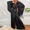 Женский модный легкий роскошный халат с длинным рукавом и кружевной отделкой, однотонный, прохладный, повседневный — купить товар онлайн с бесплатной доставкой до всему миру!