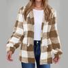 Женская модная повседневная куртка осень-зима с длинными рукавами и лацканами в клетку на молнии из плюша