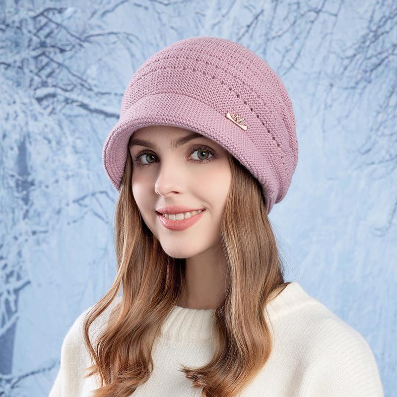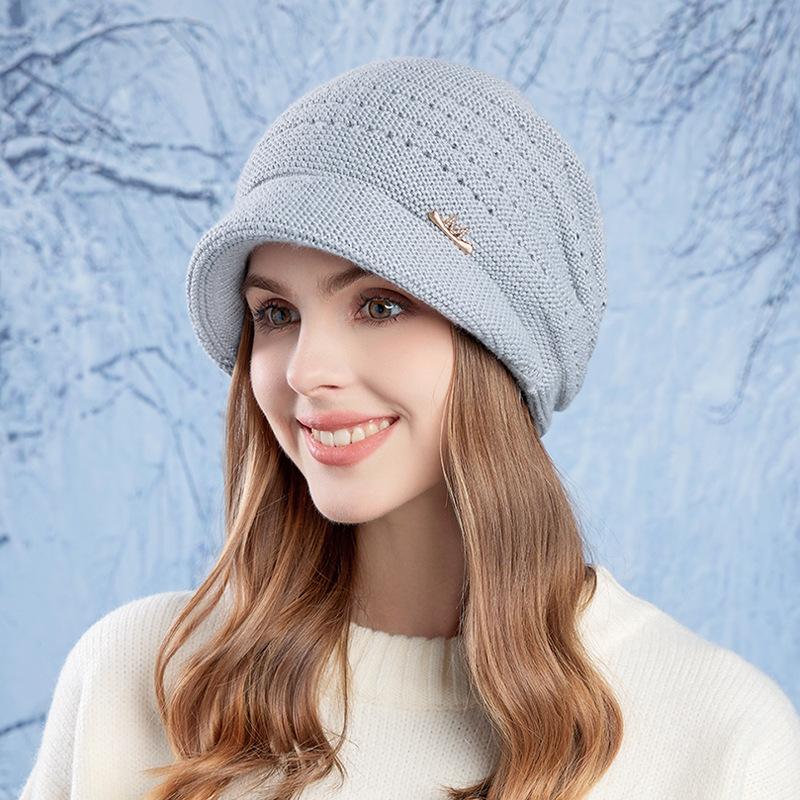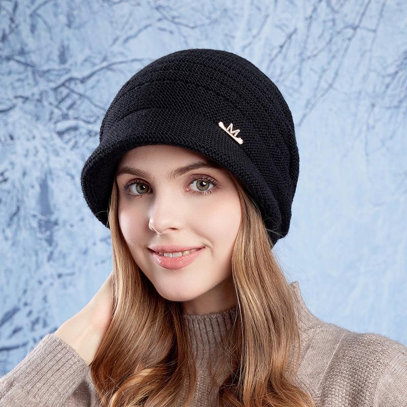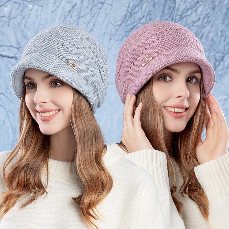 Осенне-зимняя теплая шапка с большой головой для женщин, защитная шапка для ушей, вязаная шерстяная шапка