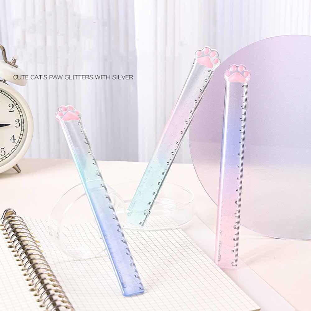 1 шт., прямая линейка с милыми кошачьими лапами, Kawaii, канцелярские принадлежности, забавный рисунок, подарок, корейский офисный школьный измерительный рисунок