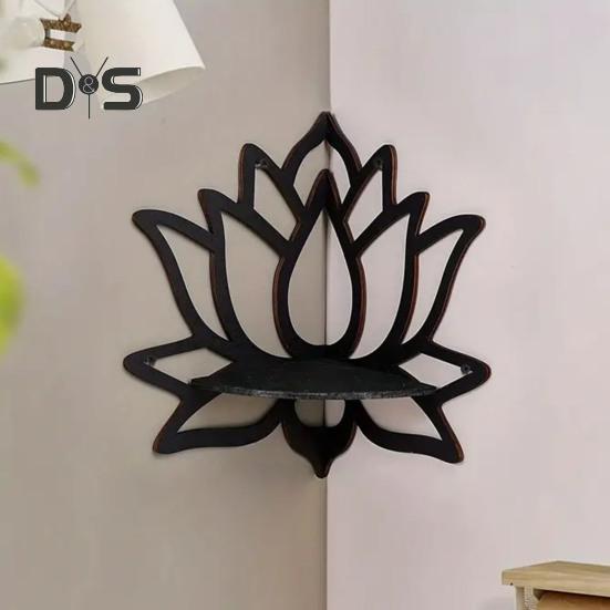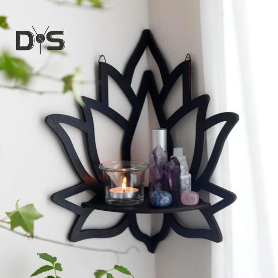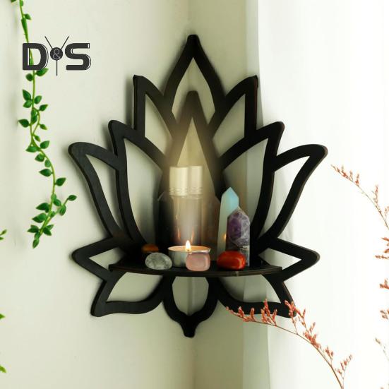 Украсьте свой дом нашей изысканной угловой настенной полкой.. Идеально подходит для демонстрации ваших любимых коллекций, кристаллов для медитации, драгоценных камней, поделок, свечей, благовоний, эфирных масел и горшечных растений.. Эти полки станут стильным дополнением к любой комнате.. Сборка очень проста благодаря предварительно разработанным отверстиям для легкой установки. Просто поместите несущую панель в отверстие и закрепите ее на стене для бесшовной установки в углах 90 градусов.. Прочная черная деревянная подставка для демонстрации лотоса/бабочки добавит элегантности вашему пространству и одновременно станет функциональной демонстрационной зоной.