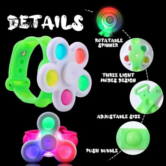 Многофункциональный дизайн: Этот светодиодный браслет плавно объединяет браслет, светодиодные фонари и игрушку-спиннер в одно очаровательное украшение для вечеринки, предлагая бесконечное развлечение как детям, так и взрослым.