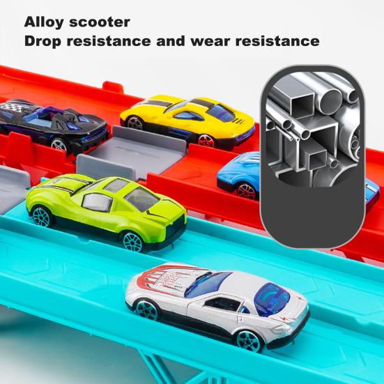 Интерактивный гоночный опыт: Наслаждайтесь динамичной игрой с 16 мини-машинками и двухэтажным автобусом, который трансформируется в трассу длиной 140 см.. Участвуйте в гоночных режимах для двух игроков, развивая коммуникативные навыки, креативность и координацию рук и глаз.