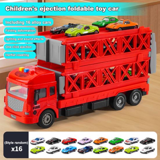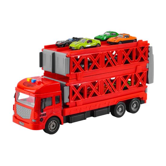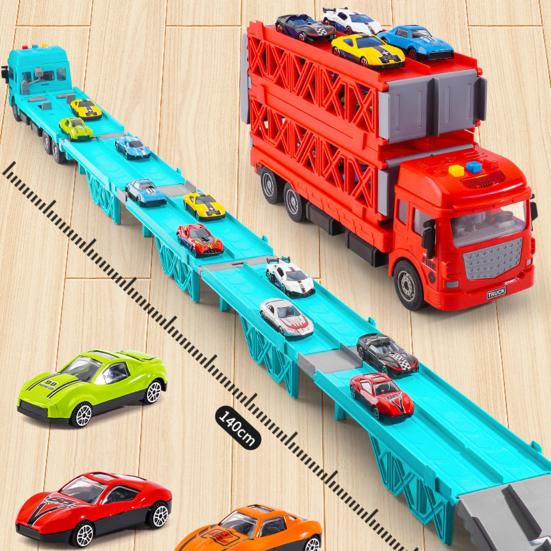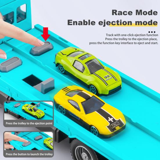 Трансформирующийся мегагрузовик: Дайте волю эмоциям с мегагрузовиком с фрикционным приводом, который превращается в захватывающую гоночную трассу. Трансмиссионные мини-автомобили с функцией выброса одним нажатием кнопки для увлекательных гонок.