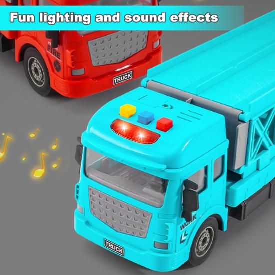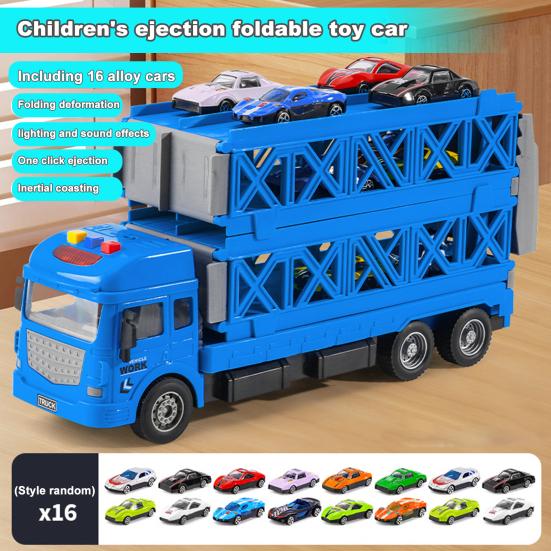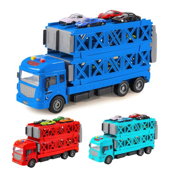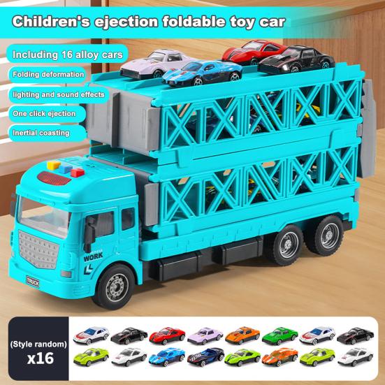 Изготовленная из прочного пластика, эта игрушка долговечна и безопасна для игр детей.. Легкая конструкция и ручка на прицепе позволяют детям легко переносить игрушку и наслаждаться ею в помещении, на улице или во время путешествий.. Кроме того, игрушка оснащена световыми и звуковыми эффектами, которые делают игру еще более захватывающей.. Этот набор игрушечных грузовиков, в который входит большой складной транспортный грузовик, станет идеальным подарком на День защиты детей, Рождество, дни рождения и другие особые случаи.. Подарите бесконечные часы творческой игры и веселых гонок с этой увлекательной и универсальной игрушкой для мальчиков и девочек.