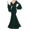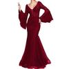 Придайте изысканность этому платью с V-образным вырезом, длинными расклешенными рукавами и изысканной кружевной отделкой, добавив вашему образу нотку очарования.
