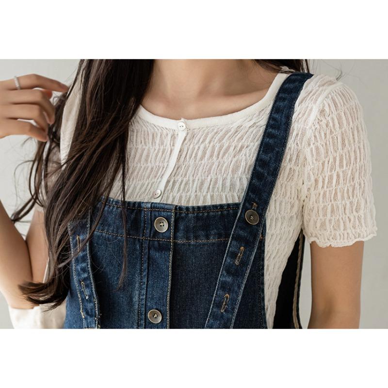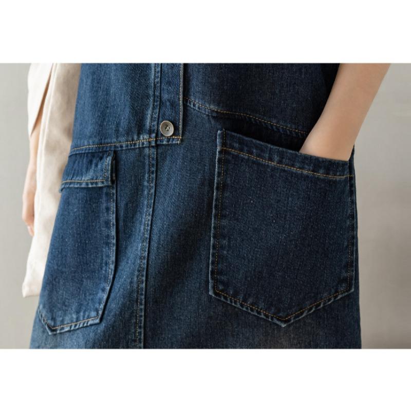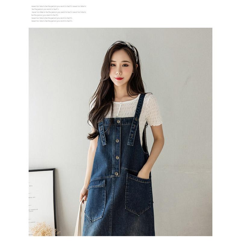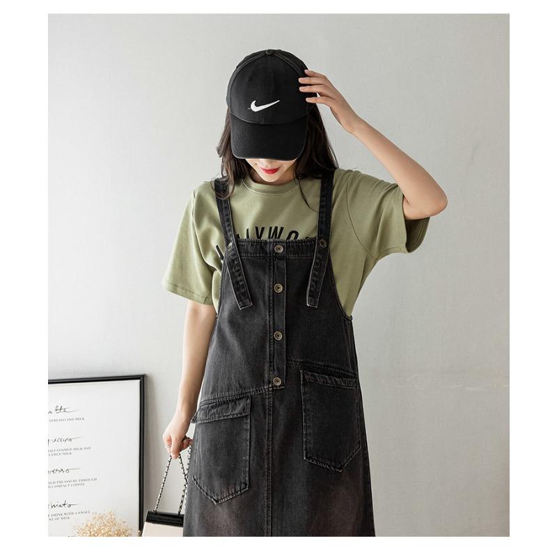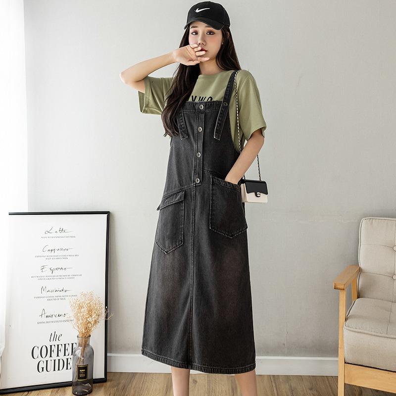 Женское свободное повседневное джинсовое платье средней длины с бретельками для похудения
