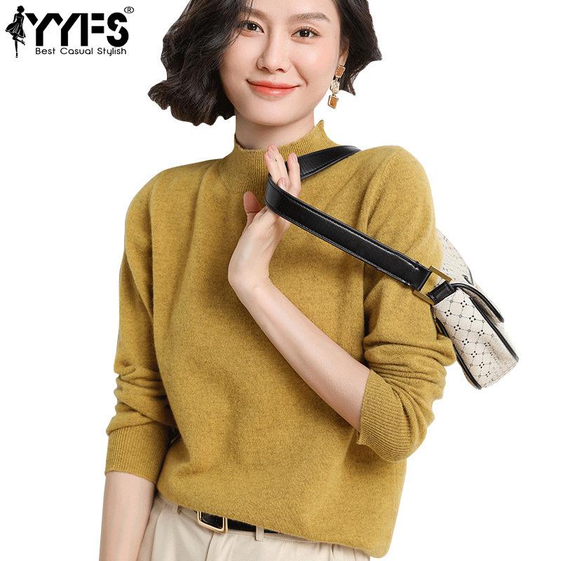 YYFS Женская мода Повседневная Осень Зима Однотонный Принт Длинный Рукав Полуводолазка Топы Женская Одежда Шерстяной Трикотаж Свитера — купить товар онлайн с бесплатной доставкой по всему миру!