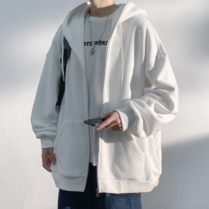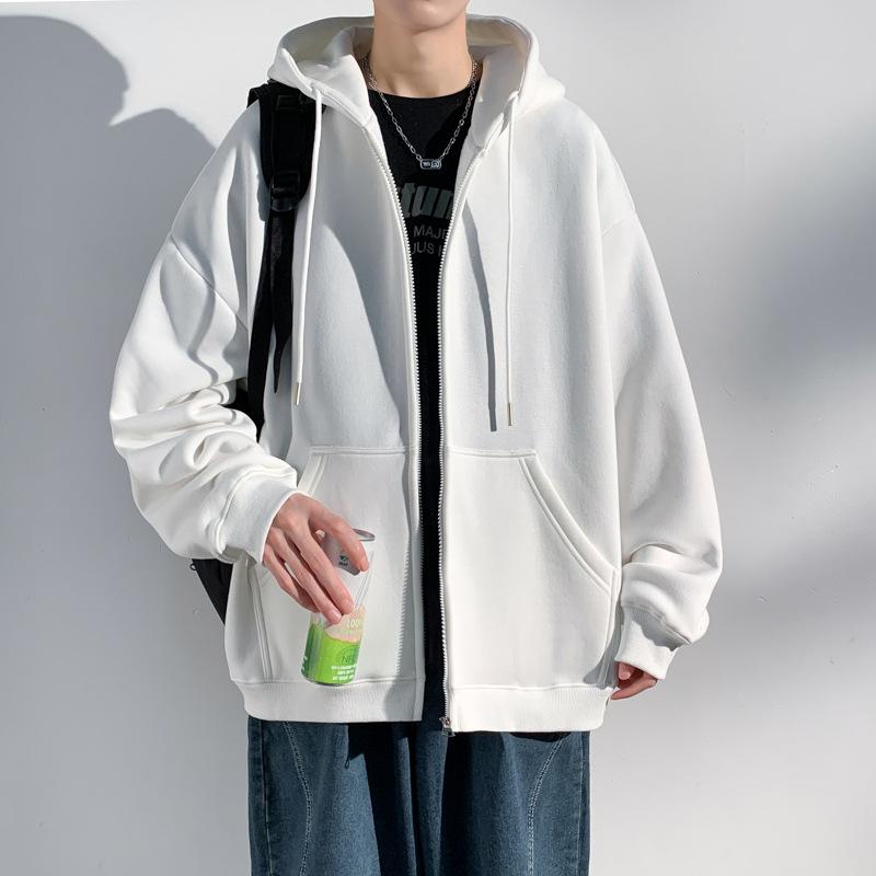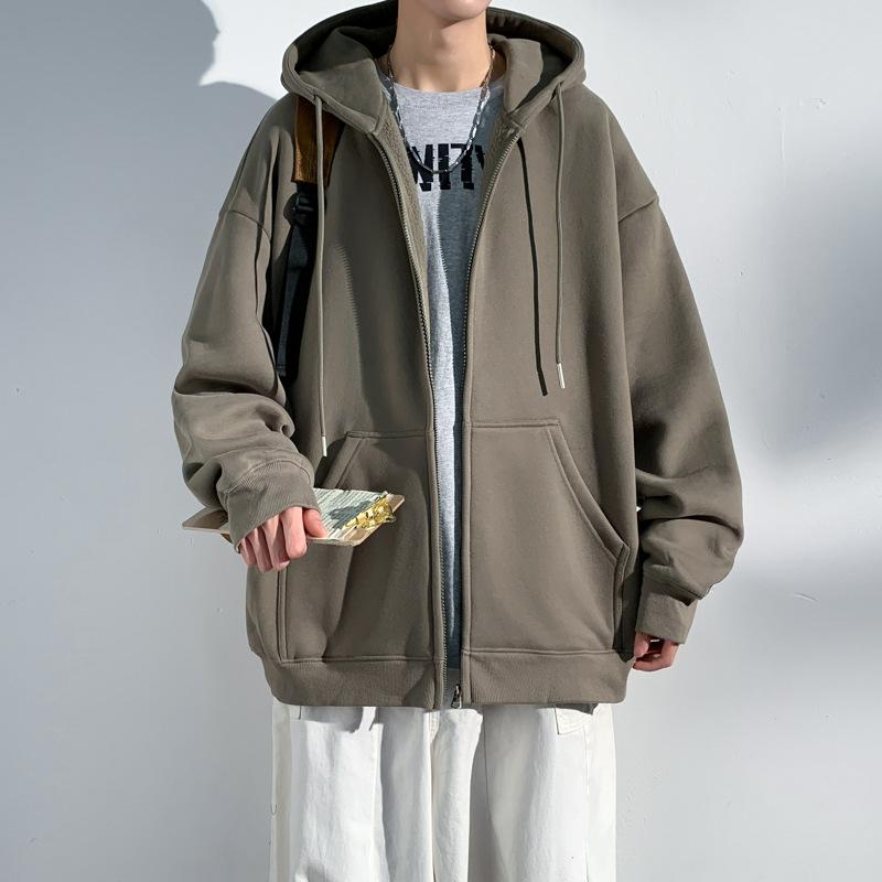 Кардиган-свитшот на молнии, мужская модная брендовая свободная куртка с капюшоном, тренд осени, молодежный однотонный топ
