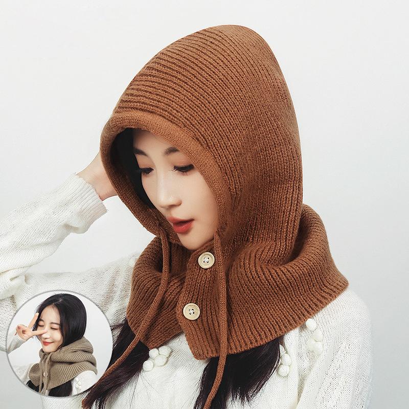 Осенне-зимняя женская вязаная шапка-шарф, интегрированная теплая защита ушей, защита шеи, шаль, шерстяная шапка