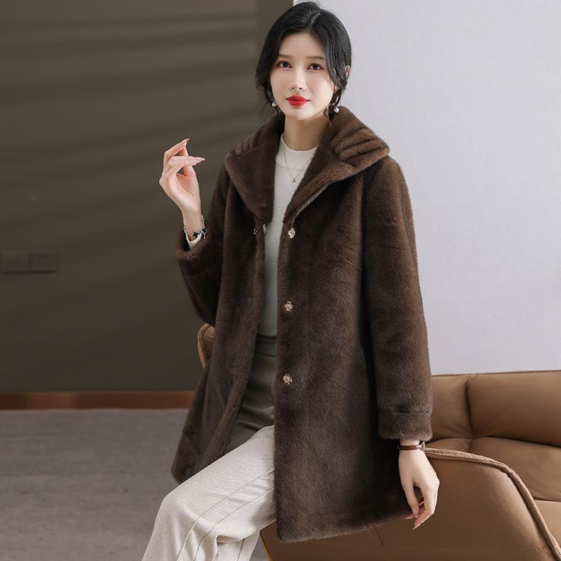 Зимняя одежда для мам, новая теплая шуба из искусственного меха норки для женщин среднего и пожилого возраста, интегрированное меховое пальто средней длины