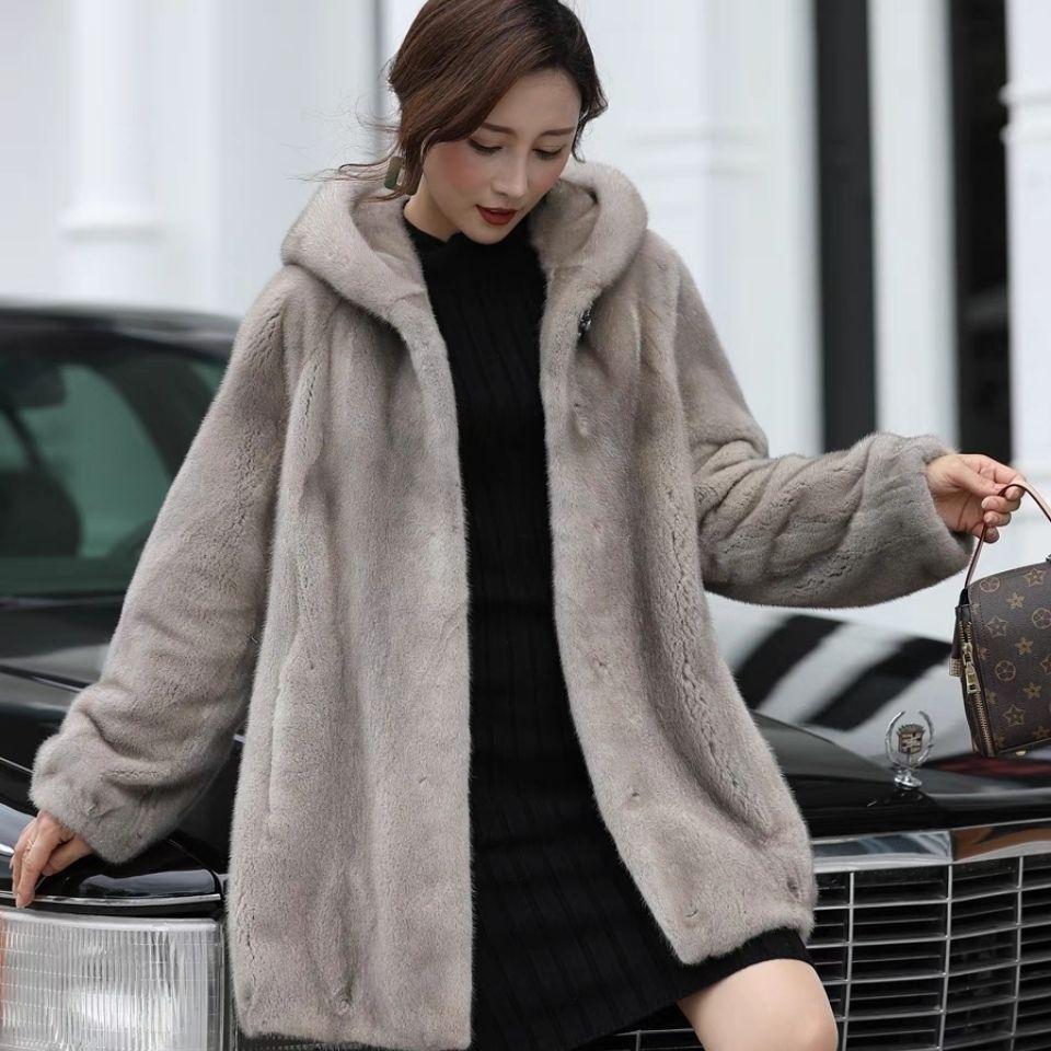 Женская свободная и утолщенная зимняя шуба с искусственным мехом норки Шуба из искусственного норкового меха Женская шуба с капюшоном из искусственного норкового меха