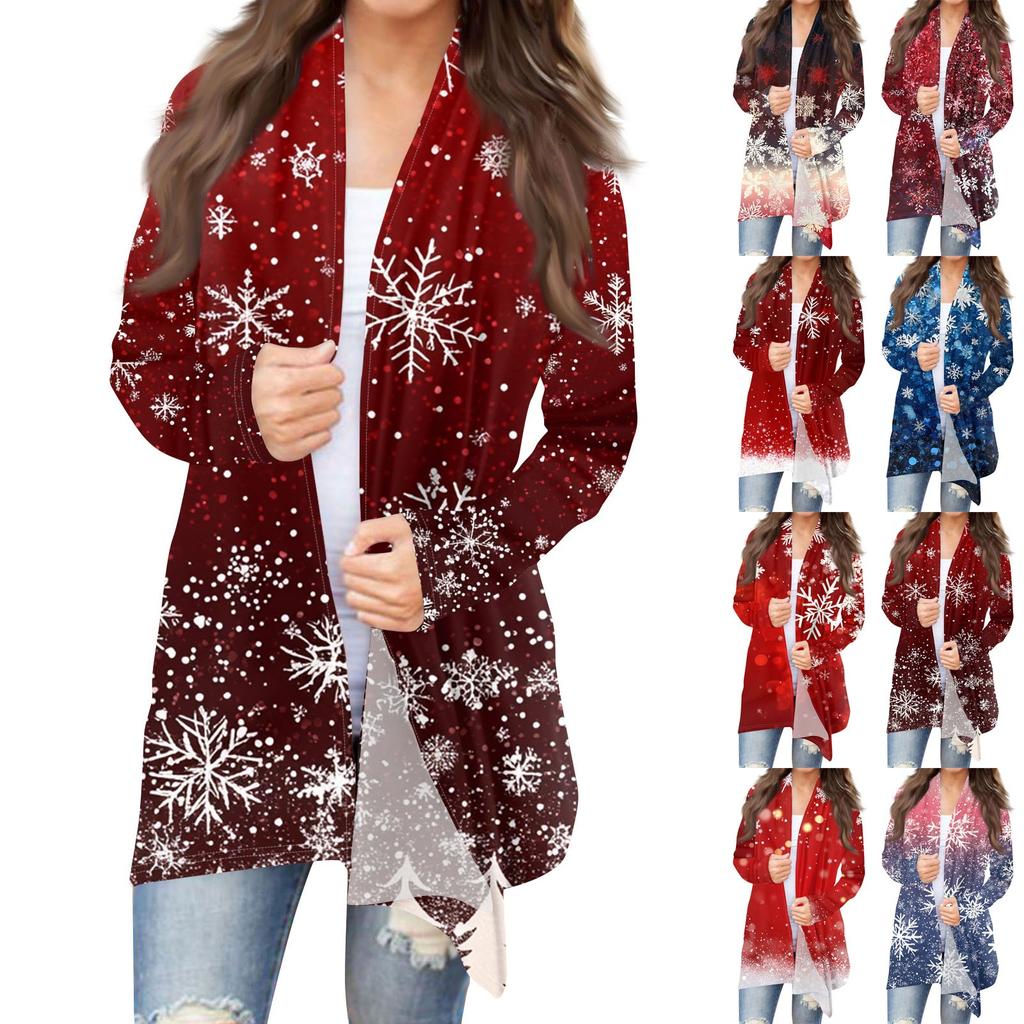 Женская мода повседневная рождественская печать средней длины кардиган куртка пальто