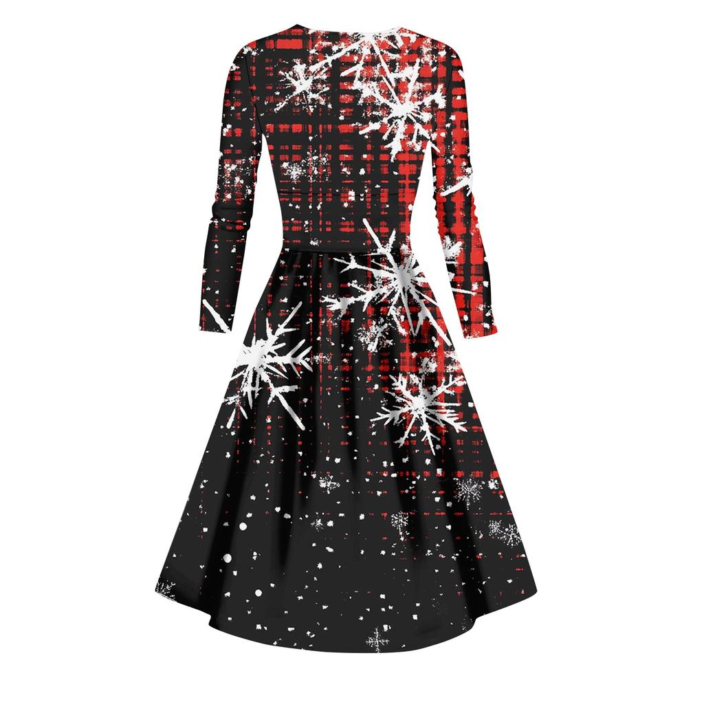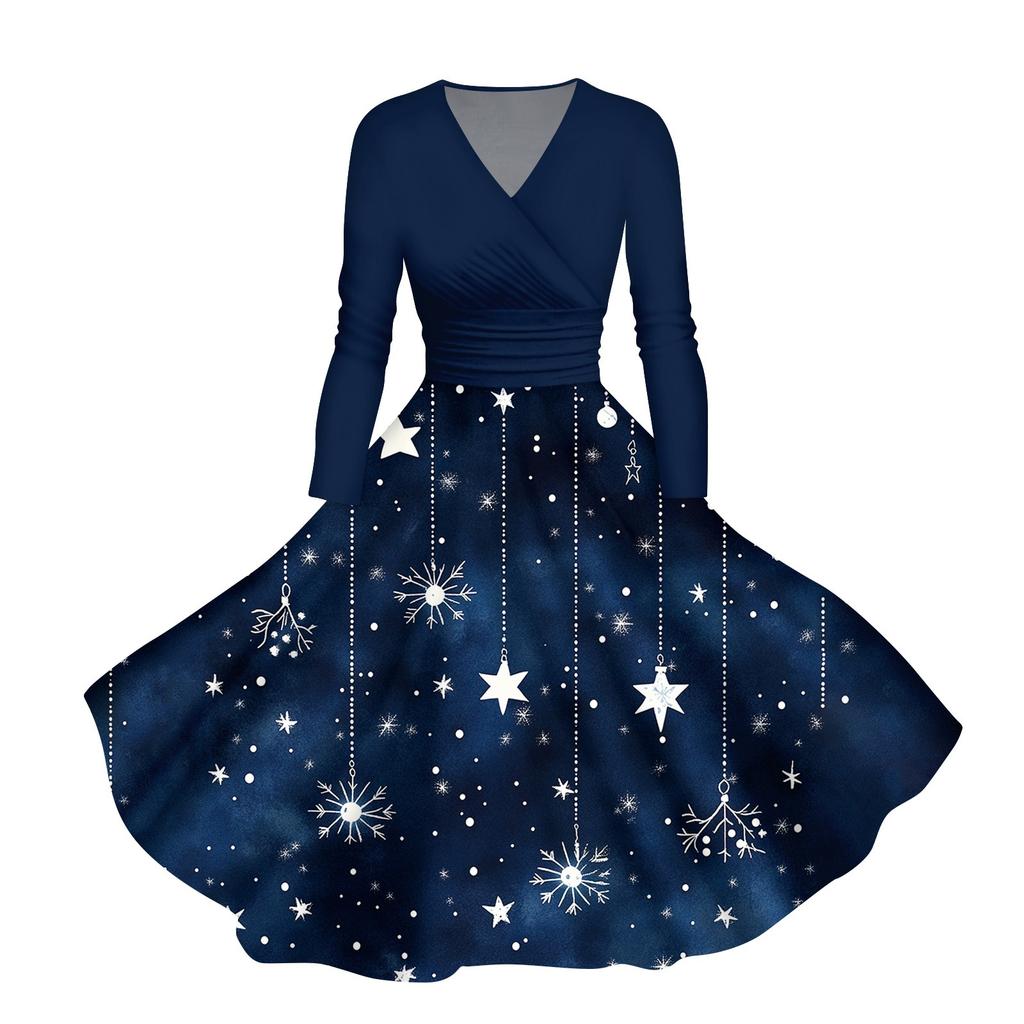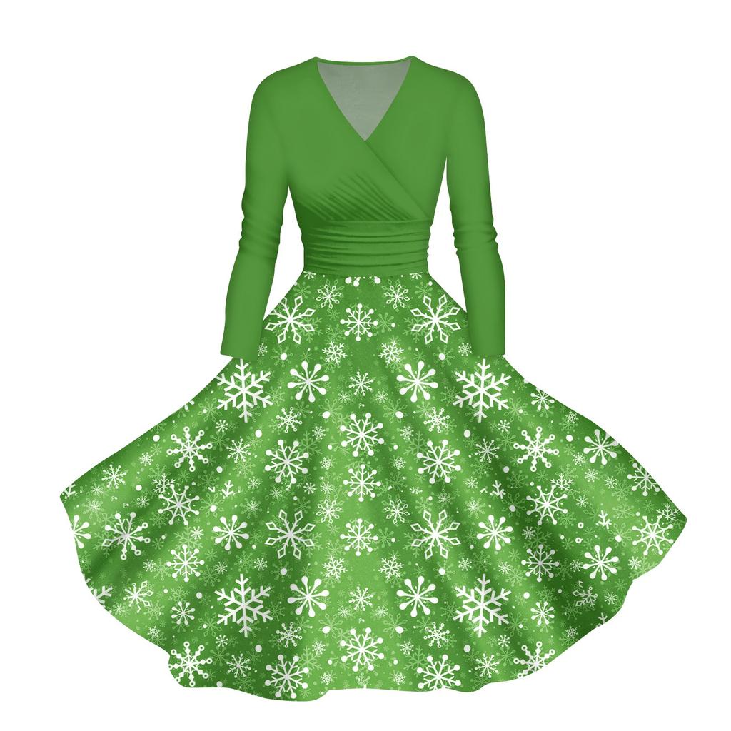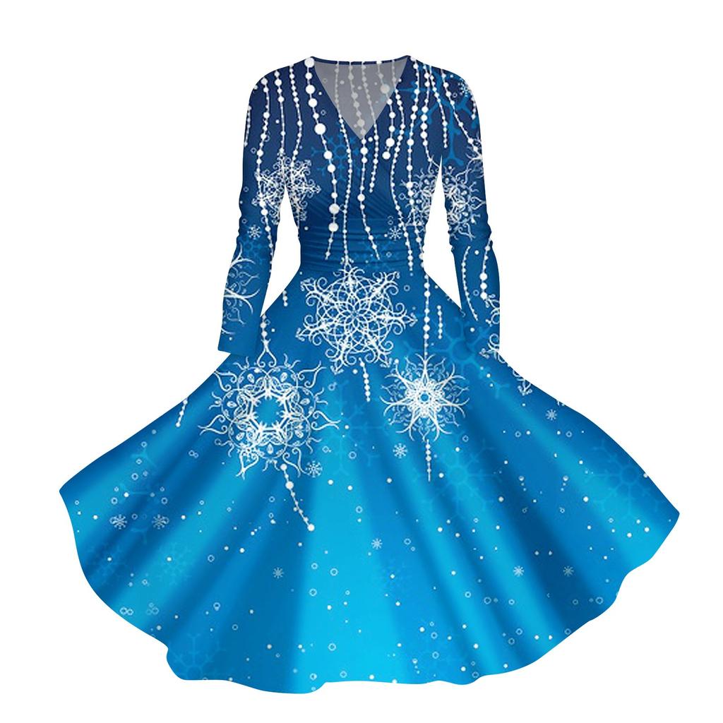 Женское повседневное модное платье с V-образным вырезом и длинными рукавами в стиле ретро с рождественским принтом в стиле ретро, осень