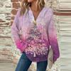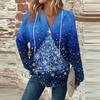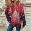 Женская мода с длинным рукавом, завязками на шнурке, капюшоном, пуговицами, V-образным вырезом, повседневная толстовка с капюшоном и рождественским принтом