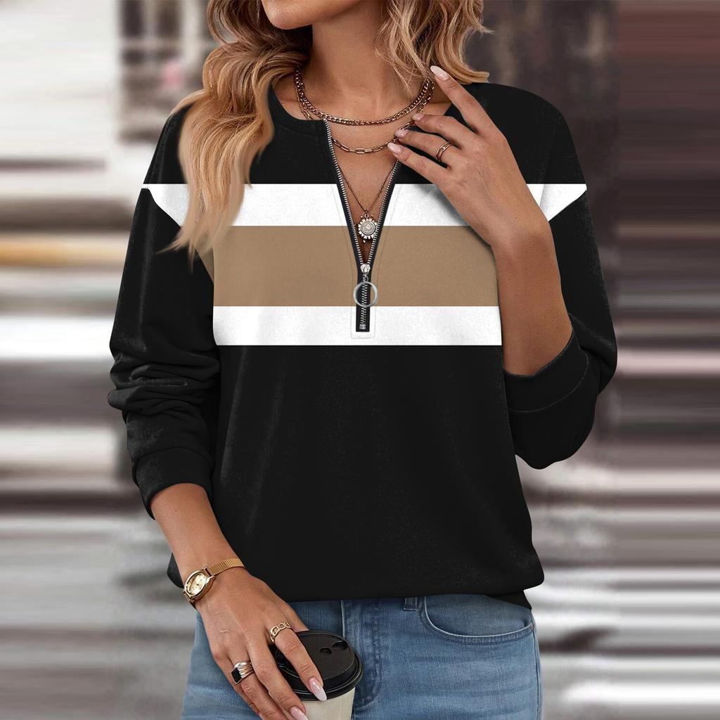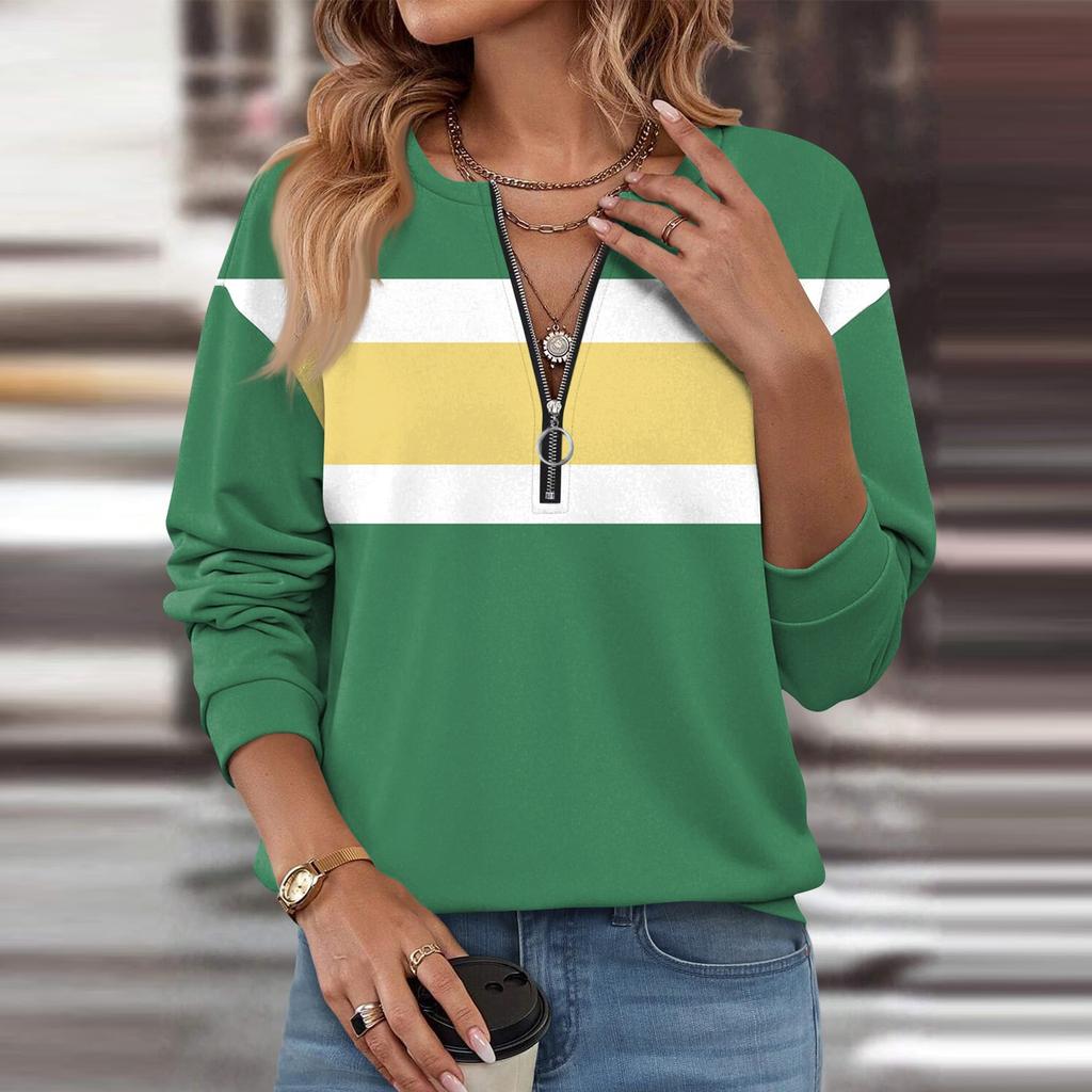 Женский повседневный свитер с длинным рукавом и застежкой-молнией на четверть длины, цветной блокирующий пуловер, толстовки, повседневная верхняя одежда на осень