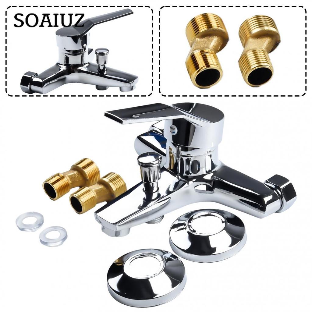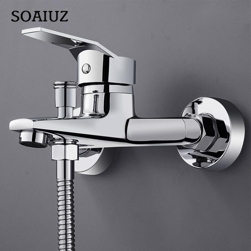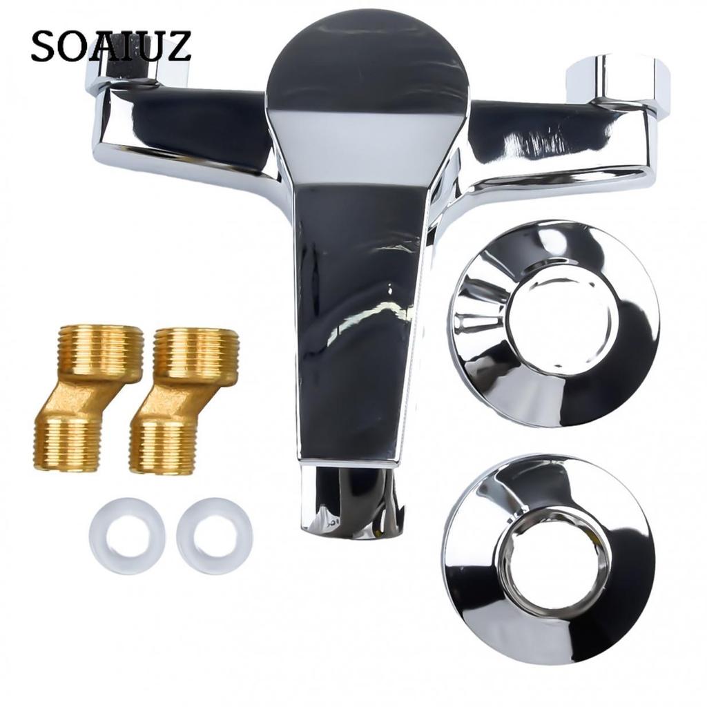 Смесители для раковины из цинкового сплава, хромированный настенный смеситель для горячей и холодной воды с двумя изливами