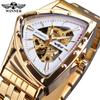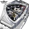 Автоматические механические часы с треугольным корпусом и скелетонированным дизайном, ремень из нержавеющей стали, модные мужские светящиеся наручные часы