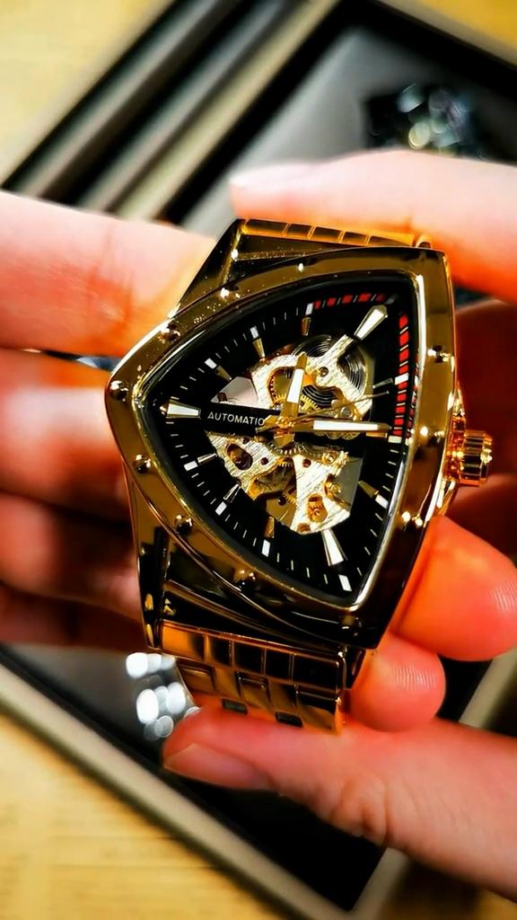 Автоматические механические часы с треугольным корпусом и скелетонированным дизайном, ремень из нержавеющей стали, модные мужские светящиеся наручные часы — купить товар онлайн с бесплатной доставкой по всему миру!