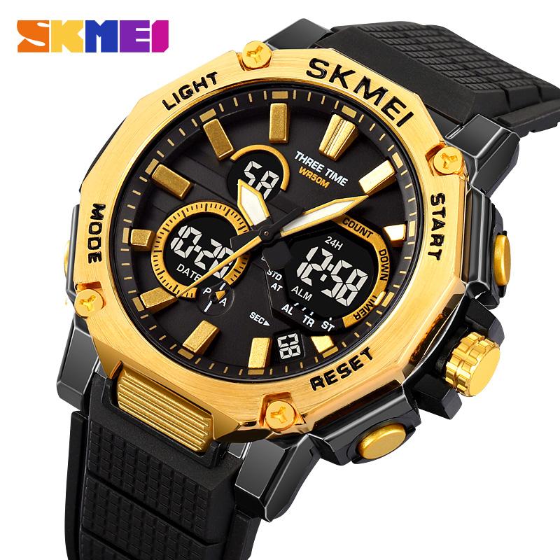 Skmei Двойной дисплей спортивные часы мужские хронограф модные повседневные 5Bar водонепроницаемые цифровые наручные часы обратный отсчет мужской будильник Reloj Hombre — купить товар онлайн с бесплатной доставкой до всему миру!