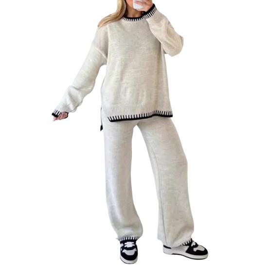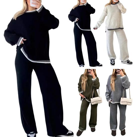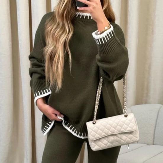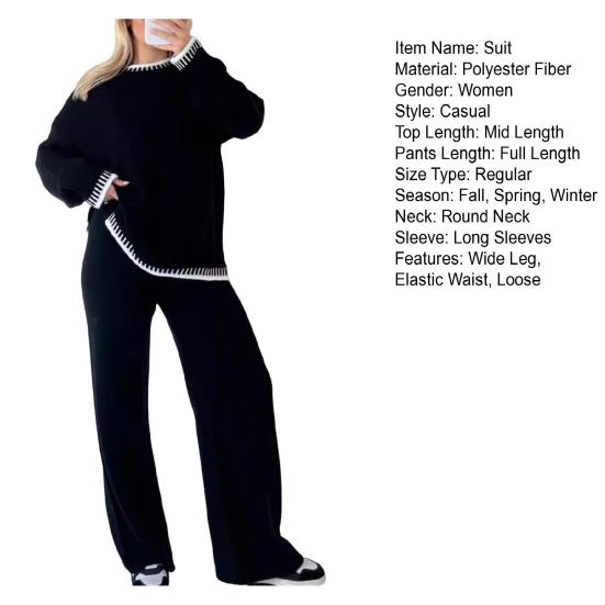 Обновите свой гардероб с помощью этого универсального женского костюма-двойки.. Попрощайтесь с дилеммами в выборе наряда и сэкономьте время с этим удобным комплектом. Легко переходите от работы к отдыху со стилем благодаря круглому вырезу, длинным рукавам и брюкам с эластичной талией, а также карманам для дополнительной функциональности.. Изготовленный из приятной для кожи полиэфирной ткани, этот костюм обеспечивает комфорт и мягкость, что делает его идеальным для ношения осенью и зимой..