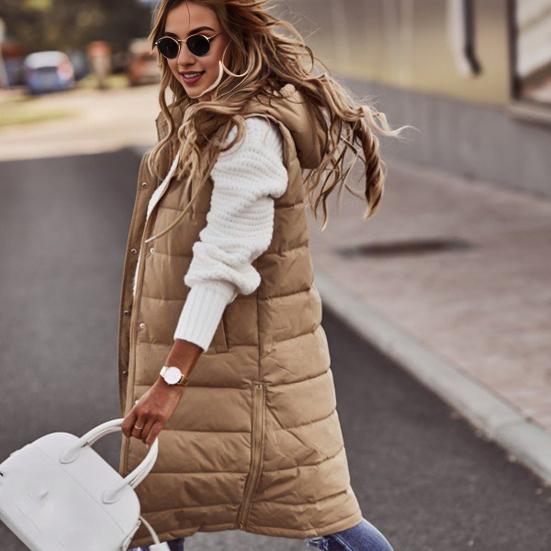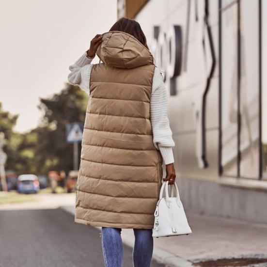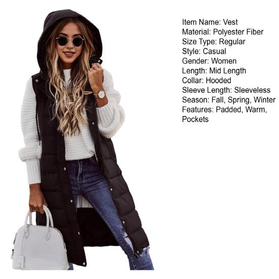 Стиль сочетается с функциональностью в этом женском жилете без рукавов с капюшоном.. Изготовленный из полиэфирного волокна с уютным наполнителем из перьевого вискозы, этот жилет обеспечивает тепло и комфорт.. Городской повседневный дизайн идеально подходит для создания стильного рабочего наряда или шикарного повседневного образа.. Этот жилет с потайной застежкой-молнией и большими боковыми карманами одновременно практичен и моден..