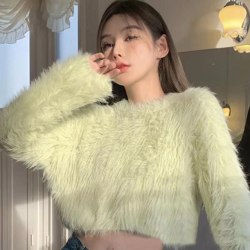 Женский корейский свитер с длинным рукавом осень-зима, новый тонкий утолщенный норковый бархатный топ — купить товар онлайн с бесплатной доставкой до всему миру!